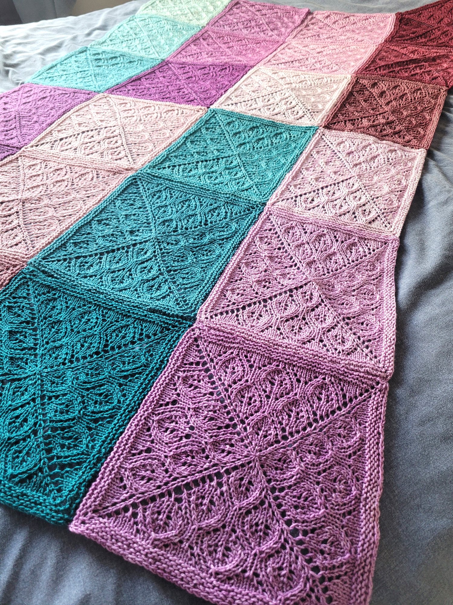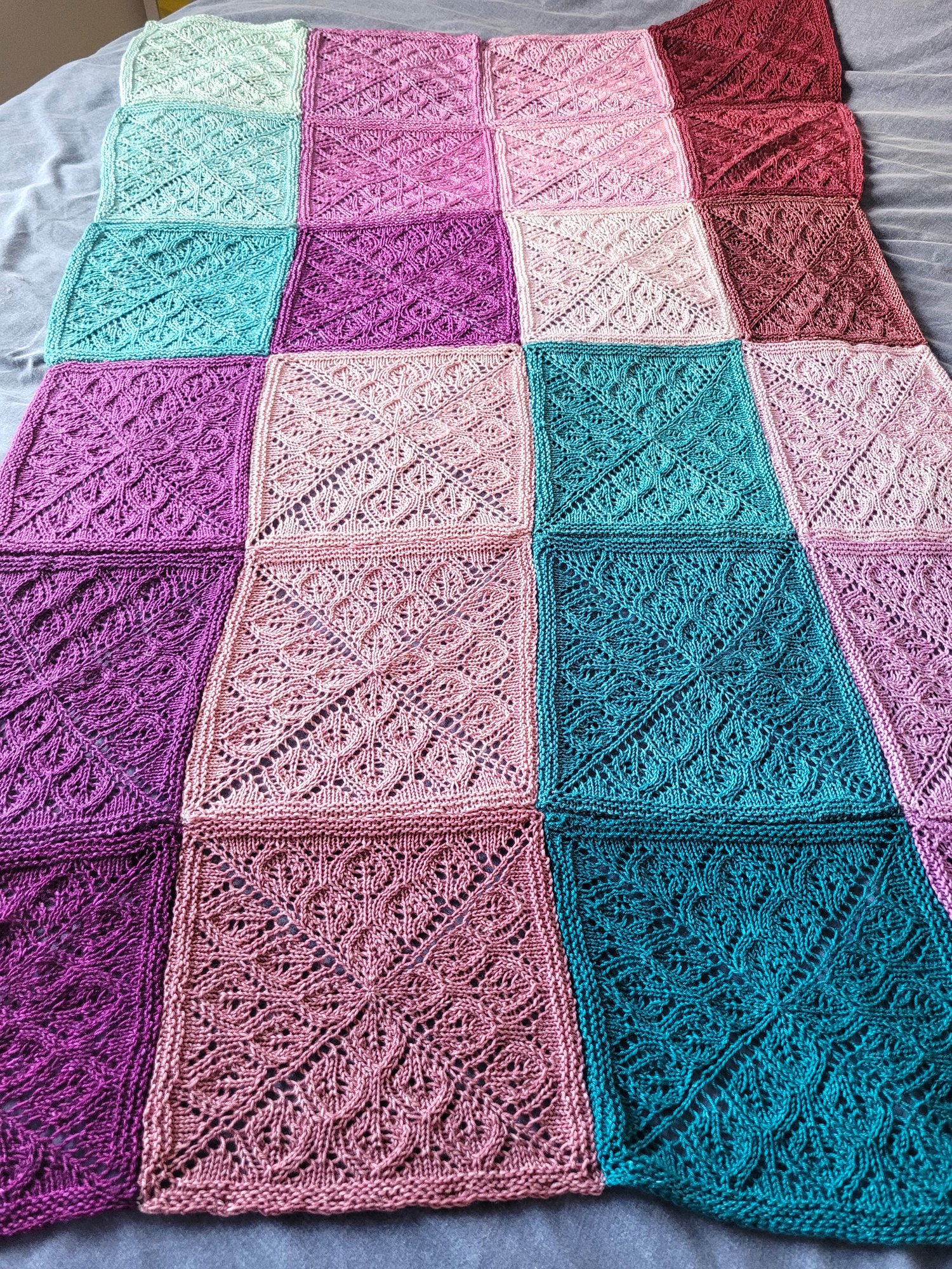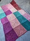 This pattern is perfect for yarn advents, mini skein sets, left overs or full skeins of 4ply/sock/fingering weight yarn. As an alternative to the blanket, combine as many squares as you wish to make a scarf, shawl or blanket. Each square used approx 18g. Squares can be made larger if preferred (more yarn needed). Sample is shown in the Botanical Yarn Advent Calendar 2022. Use either double pointed needles or magic loop.