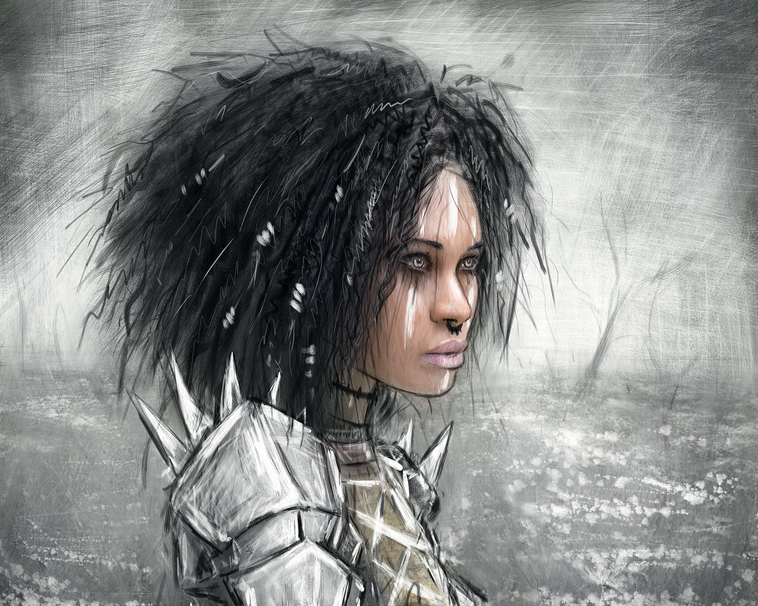 Full resolution digital painting image download of a gothic warrior by Justin Gedak.