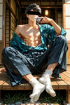 日本の正月をテーマに、着物を着用している男性を、キャラクターごとにお任せ作成しました。男らしいキャラクターの魅力を思い切って表現しました。