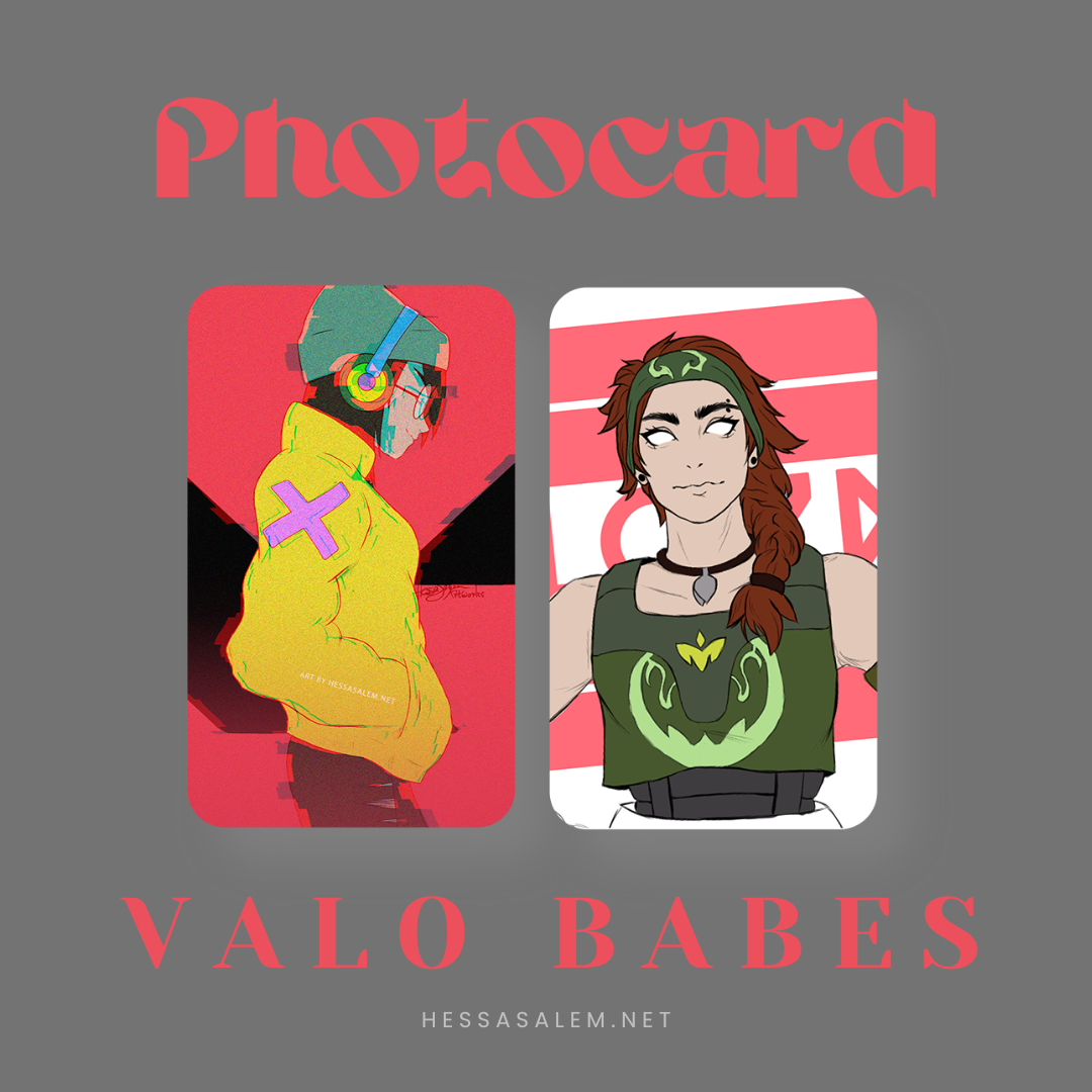 A photo-card print fan-artwork of Killjoy from Valorant by © HessaSalem.net, 2021.