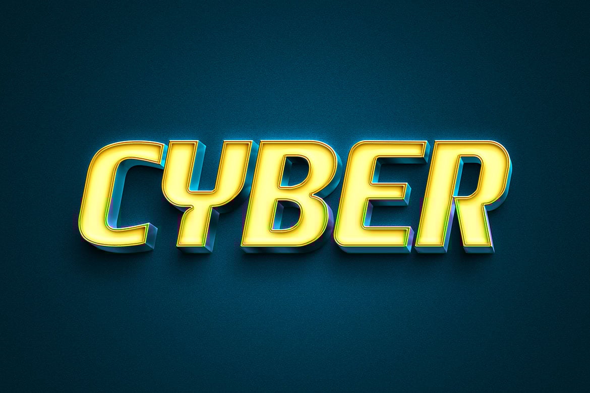 Styled with a bold, glowing 3D illuminated effect. The letters appear smooth and rounded, filled with a bright yellow-to-golden gradient that simulates an internal light source. Each letter has a thick cyan 3D extrusion, giving the text depth and making it appear as though it’s floating slightly above the background.