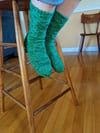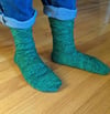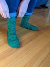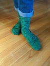 The sizes of socks call for 1 (1, 1, 2, 2) skeins of Anzula Nebula in Fern 84% Superwash Merino, 16% Sparking Stellina; 400 yds, 364 m per 100 g skein