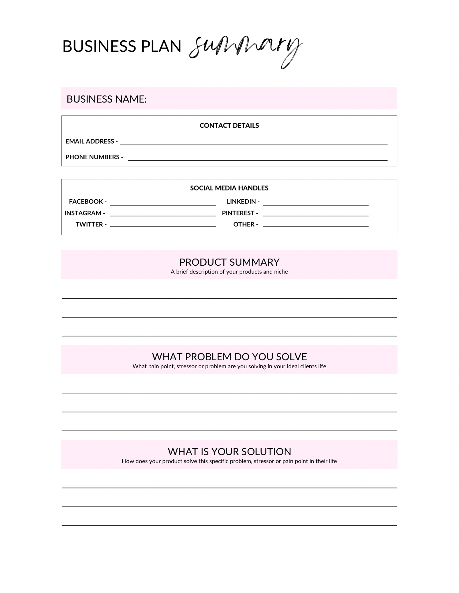 - Business plan summary