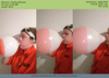 Worker girl Charley blows up a cool duo color balloon until it pops