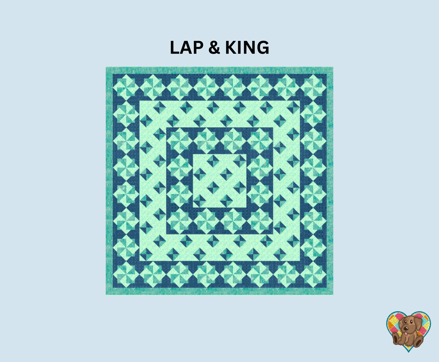 *Note: This pattern includes instructions for a lap (64.5" X 64.5"), twin (80.5" X 90"), queen (90.5" X 101.25"), and king (110.5" X 110.5") size quilt.* Blocks are traditional pieced blocks.