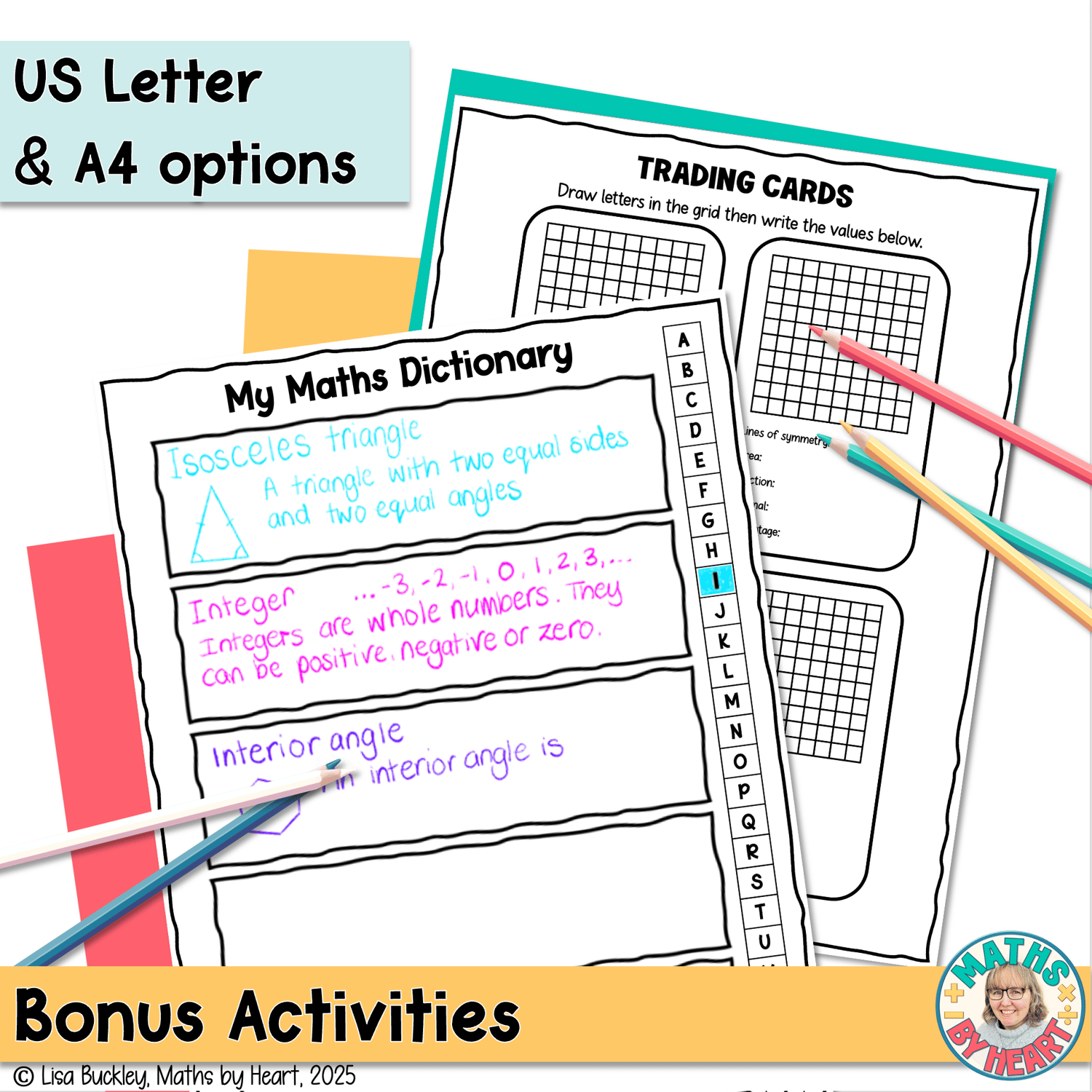 ✅ Bonus resource section includes blank grids, blank fraction strips, lettering templates, a maths dictionary template, and extension ideas.