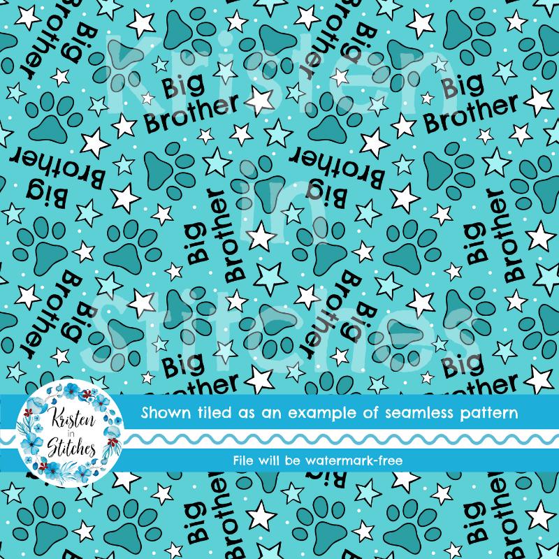 Big Brother Puppy Dog Paw Prints Seamless Pattern