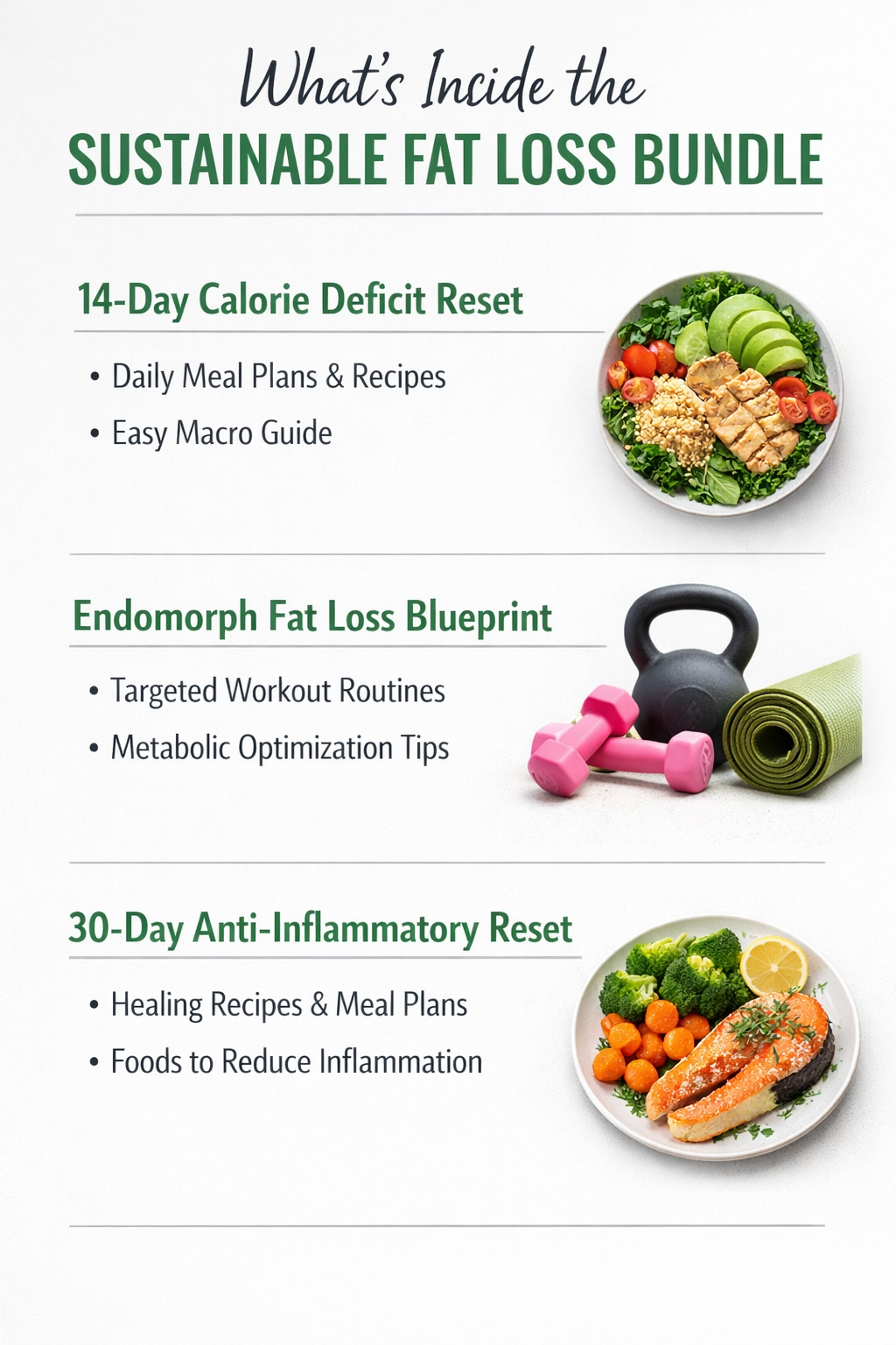 The Sustainable Fat Loss Blueprint Bundle is a complete, science-based system designed for those who want to lose stubborn fat effectively while maintaining energy, health, and long-term results.