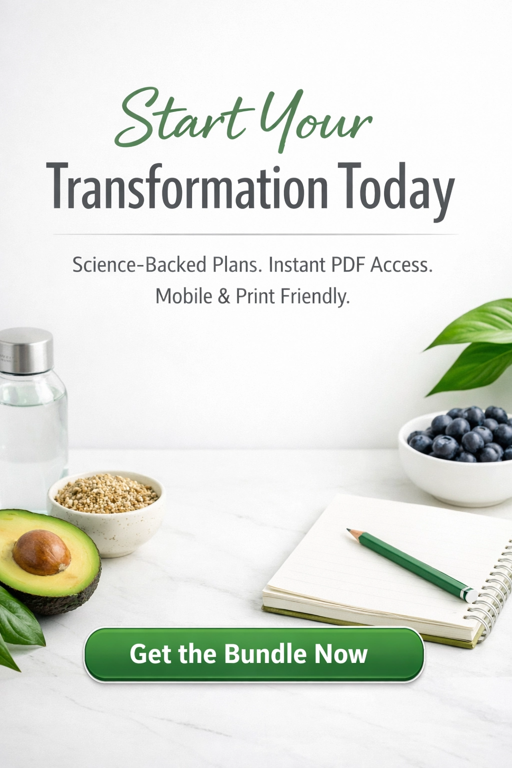 Instead of extreme restrictions that lead to rebound weight gain, this bundle focuses on creating a moderate calorie deficit, reducing inflammation, and building sustainable eating habits that you can actually maintain for life.
