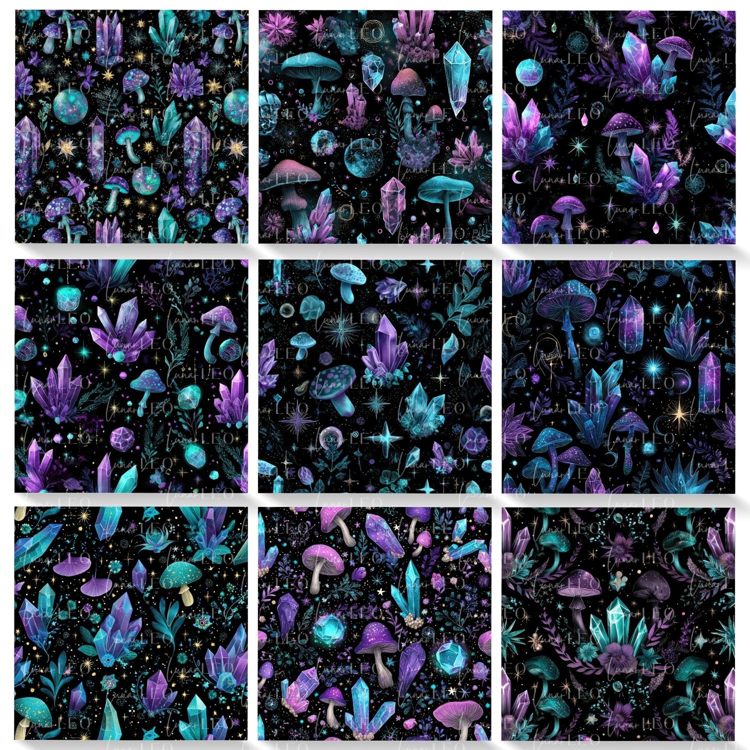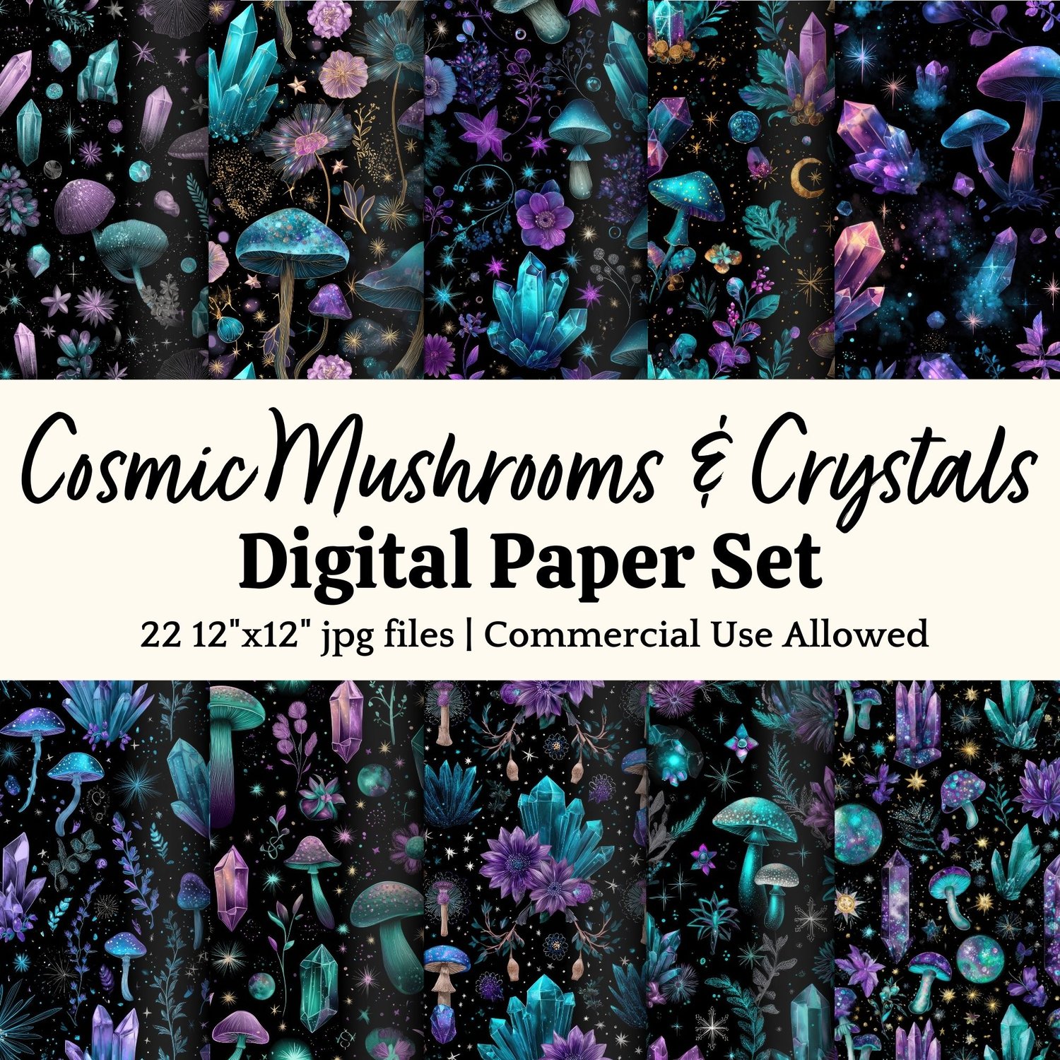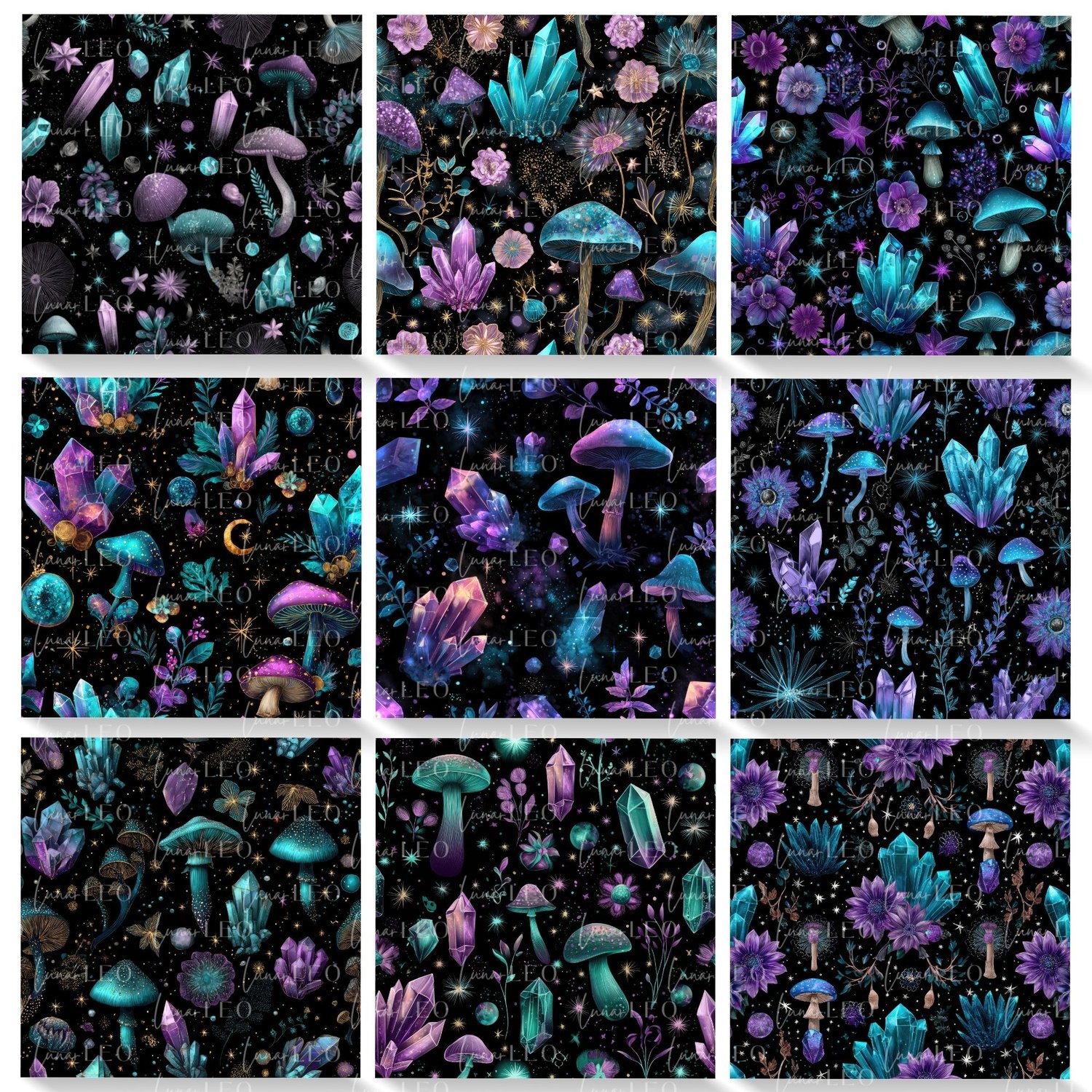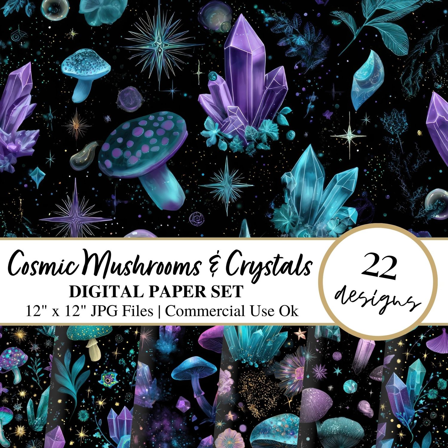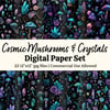 Cosmic Mushrooms & Crystals Digital Paper Pack – Fantasy Galaxy Backgrounds