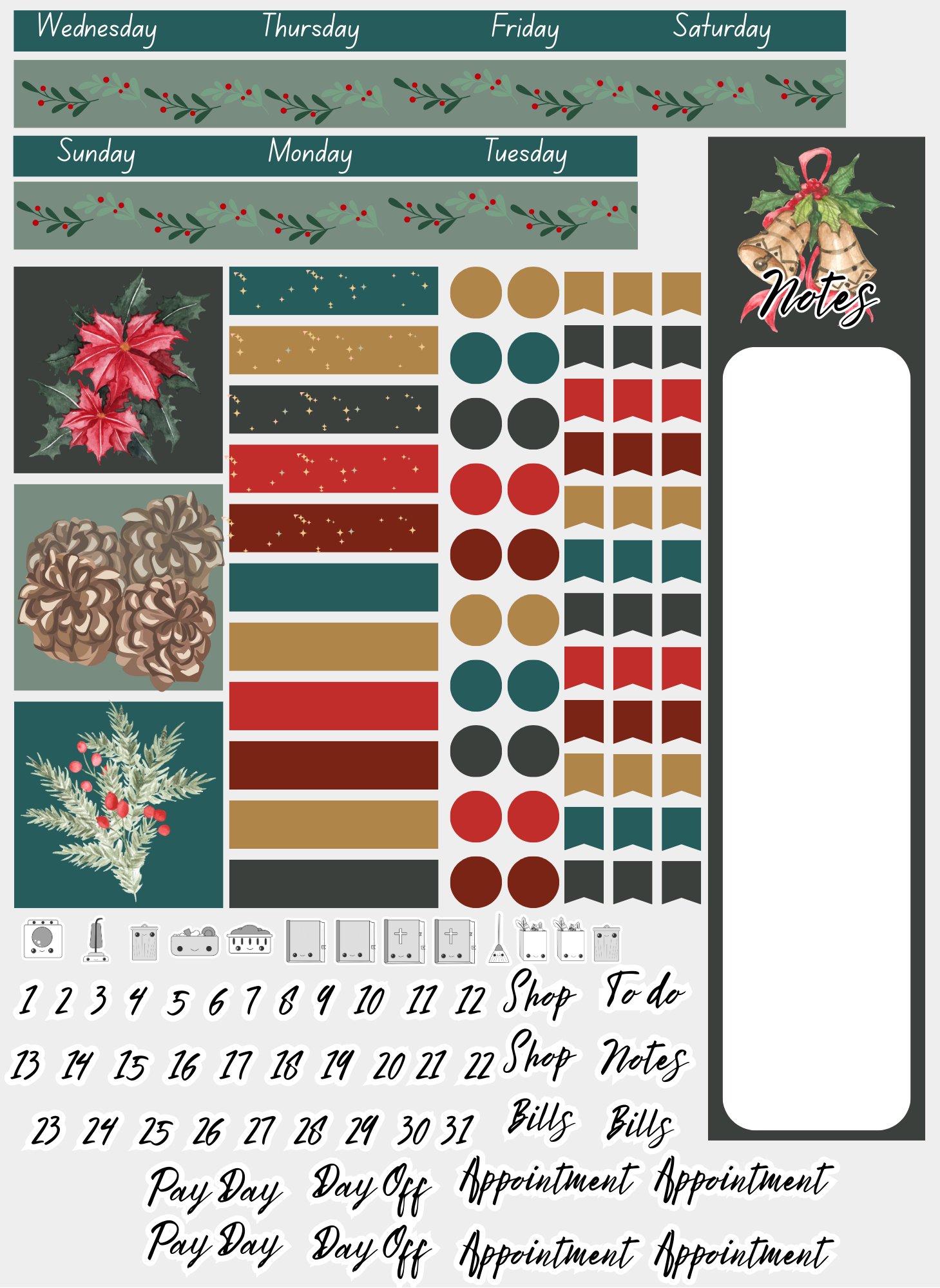 Holly and Ivy Winter Botanical Monthly Planner Sticker Kit - Happy Planner