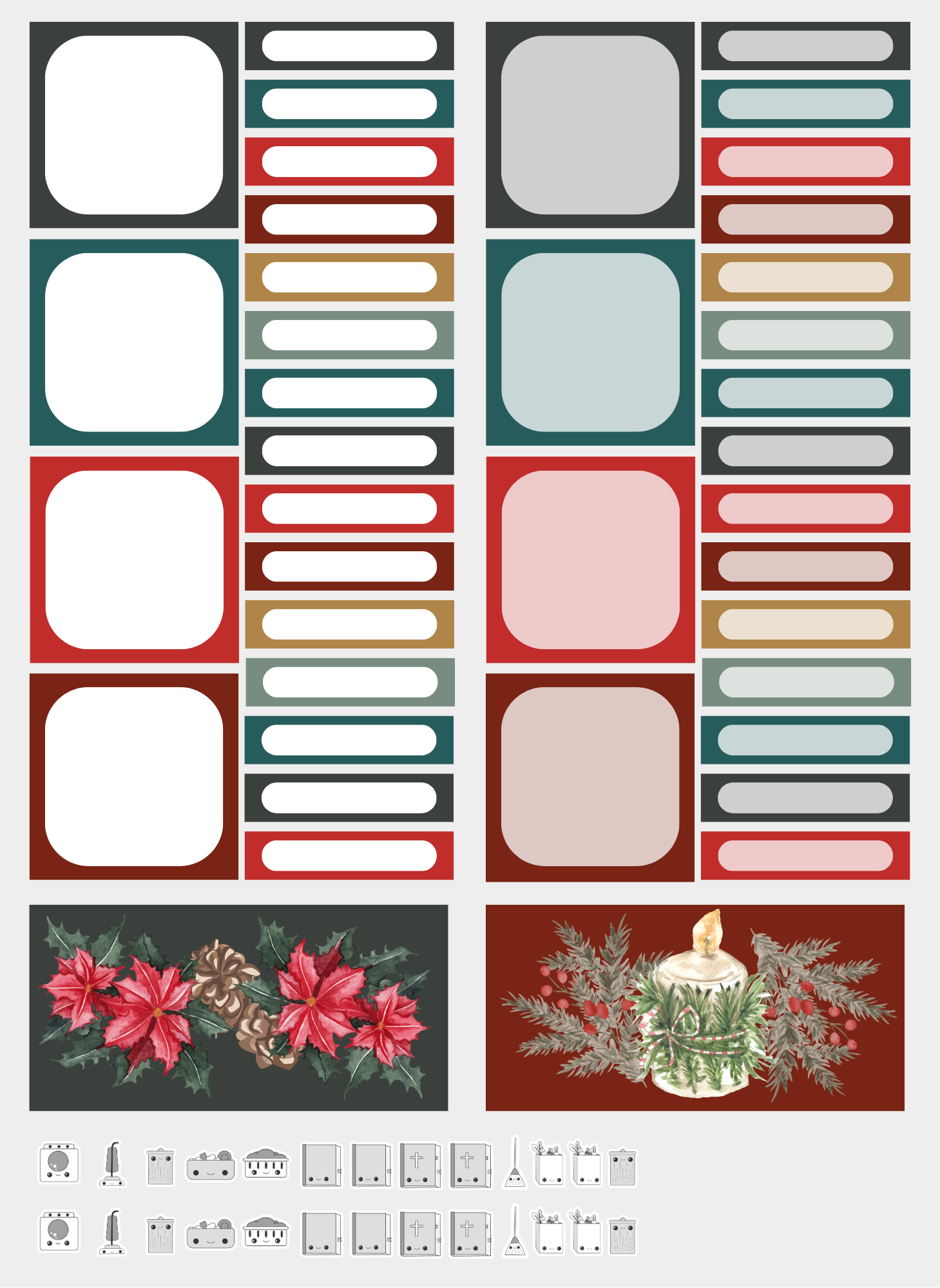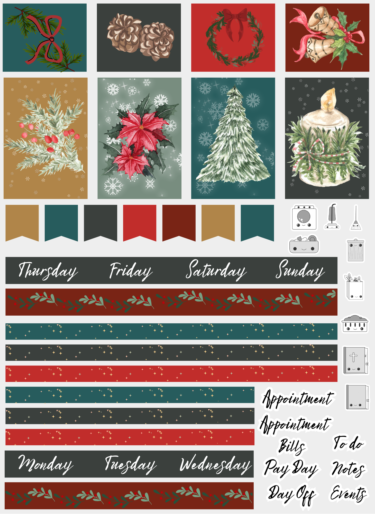 Start the year with this lovingly designed winter themed monthly kit featuring dark greens and reds. Add a rustic touch to your monthly planning. Sized for the Happy Planner Classic planner but usable in Erin Condren or other vertical planners. Can be resized for other Happy Planner sizes.