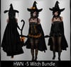 Bundle Include : Dress , Boots , Gloves , Vest Cape , Witch Broom and Witch Hat . Bundle in 6 colors .