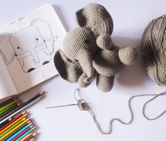 Hello this is a design inspired by a baby elephant, ideal for small babies, you can add a rattle to make it sound.