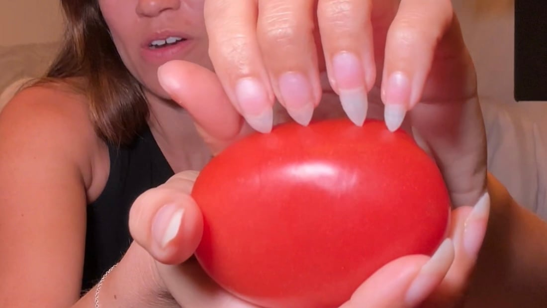 I use a tomato to show what my nails would do to the attackers face, skin, eyes, nose and mouth. I talk about clawing their eyes out with my nails and tearing their face apart until they look like hamburger meat. They will regret attacking me. The "attacker" gets absolutely destroyed to pieces with my super sharp claws.