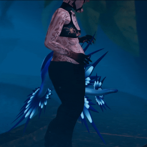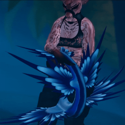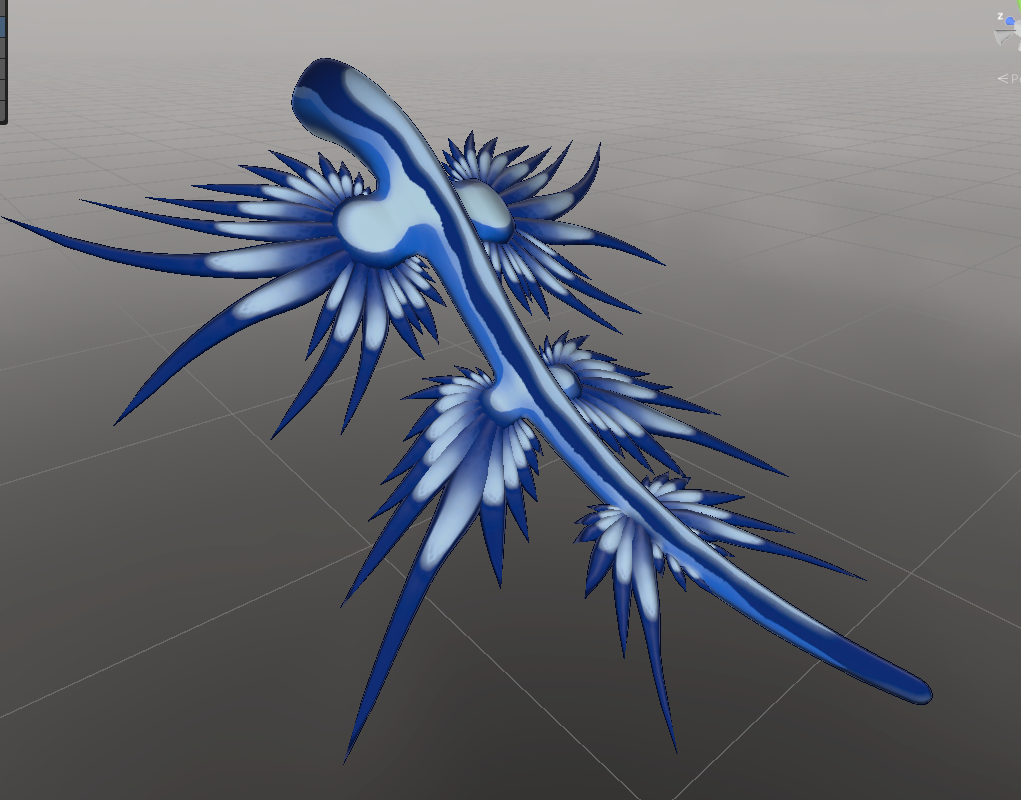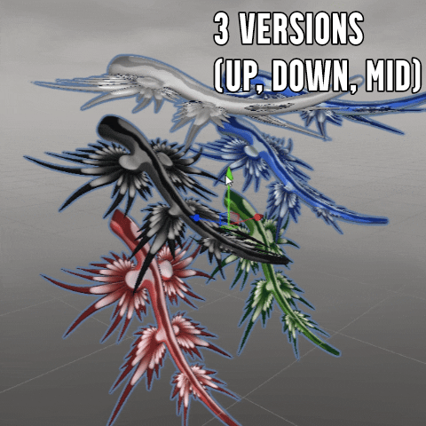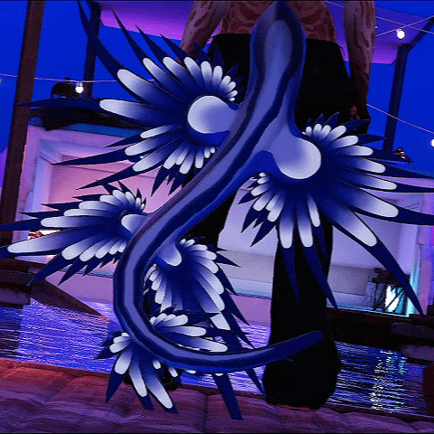 A striking and glowy tail, inspired by the blue dragon sea slug! I super loved making this. There are 3 versions; up, down, and middle, and 5 different colors, each with wet versions, making this tail highly customizable!