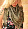 Exact gauge is not essential, but any differences in gauge will impact the finished dimensions of the shawl, its drape, and the amount of yarn used.