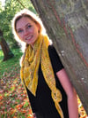 Yarn: 700m of 4-ply/fingering weight yarn, the sample is made in Hedgehog Fibres Skinny singles, 366m/100g, in Fool’s Gold.
