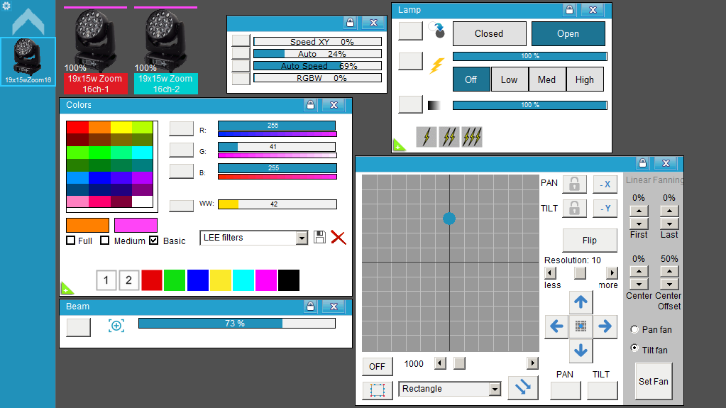 Librerías para Freestyler DMX del Cabezal Móvil "19x15w Zoom" de Flash Butrym ( P7100546 ).