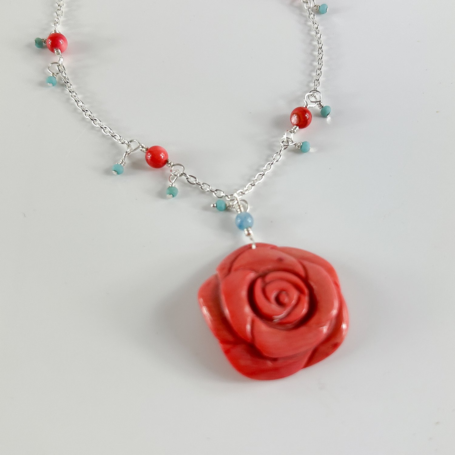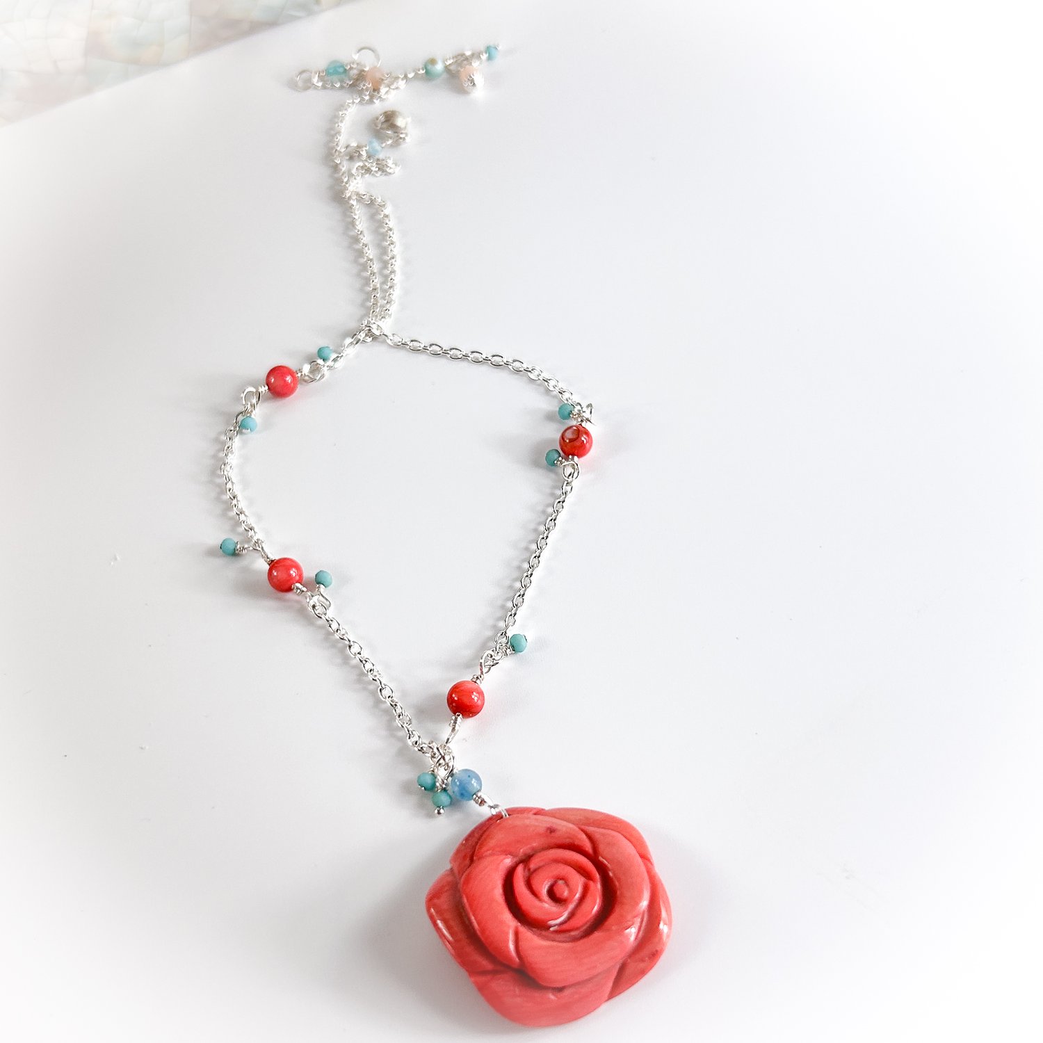 My dear friend, let me tell you a story. I found this rose in a sun-drenched stall in the Philippines—hand-carved from coral, offered to me with the kind of quiet grace that feels like destiny. I carried it home across oceans, knowing it was meant to become something more. And so, I made this necklace—for you.