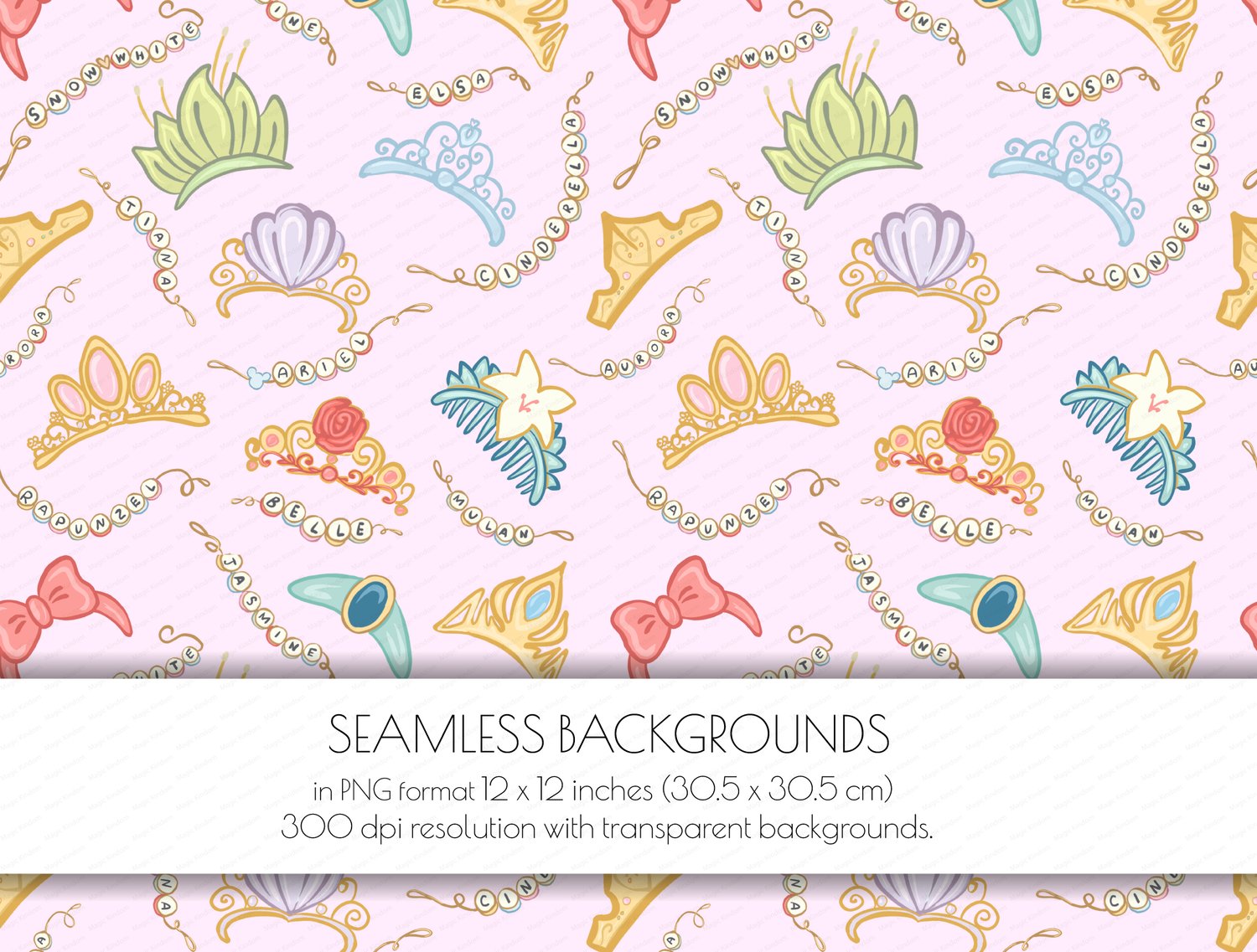 1 Disney Princess Crowns Seamless Background in PNG format 12 x 12 inches (30.5 x 30.5 cm) 300 dpi resolution .