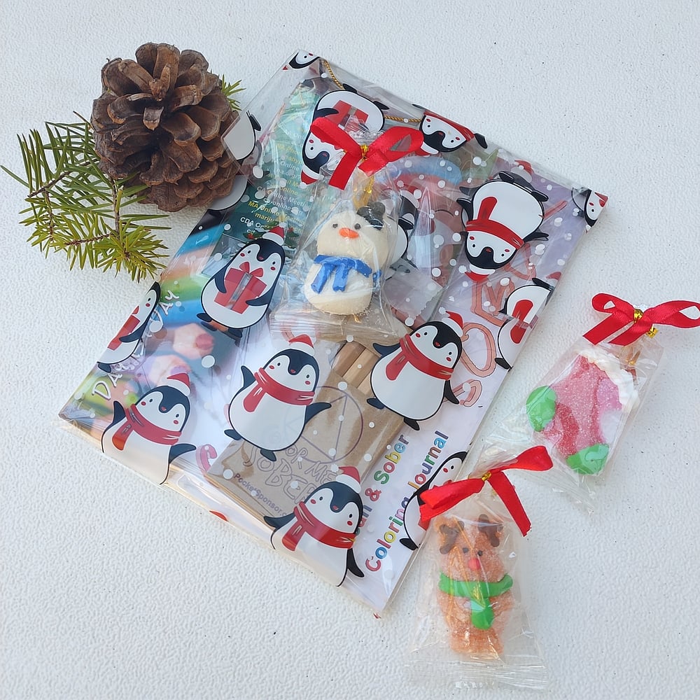 g) Gift Bag (Cellophane holiday bag with a red bow or Christmas character)