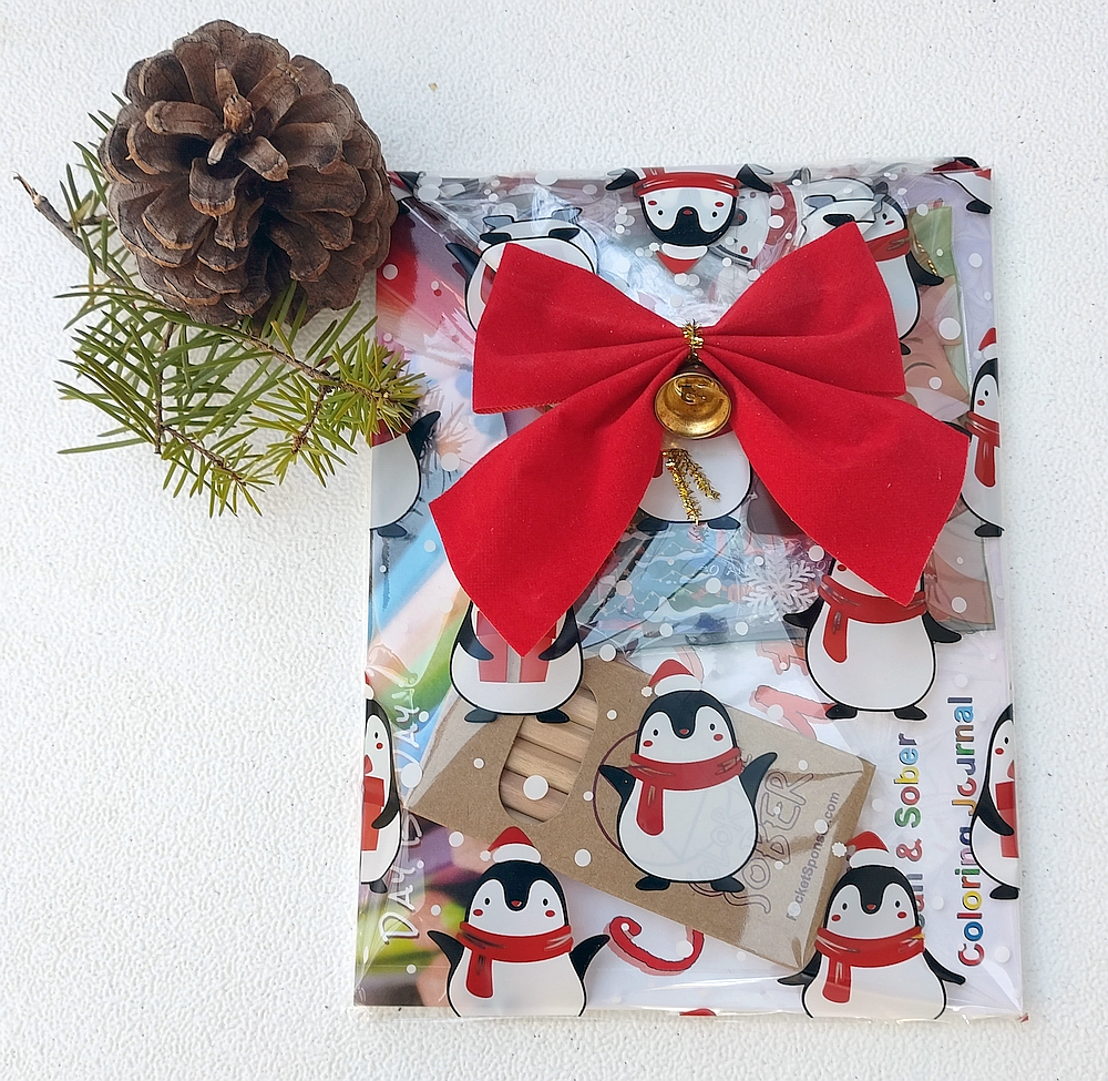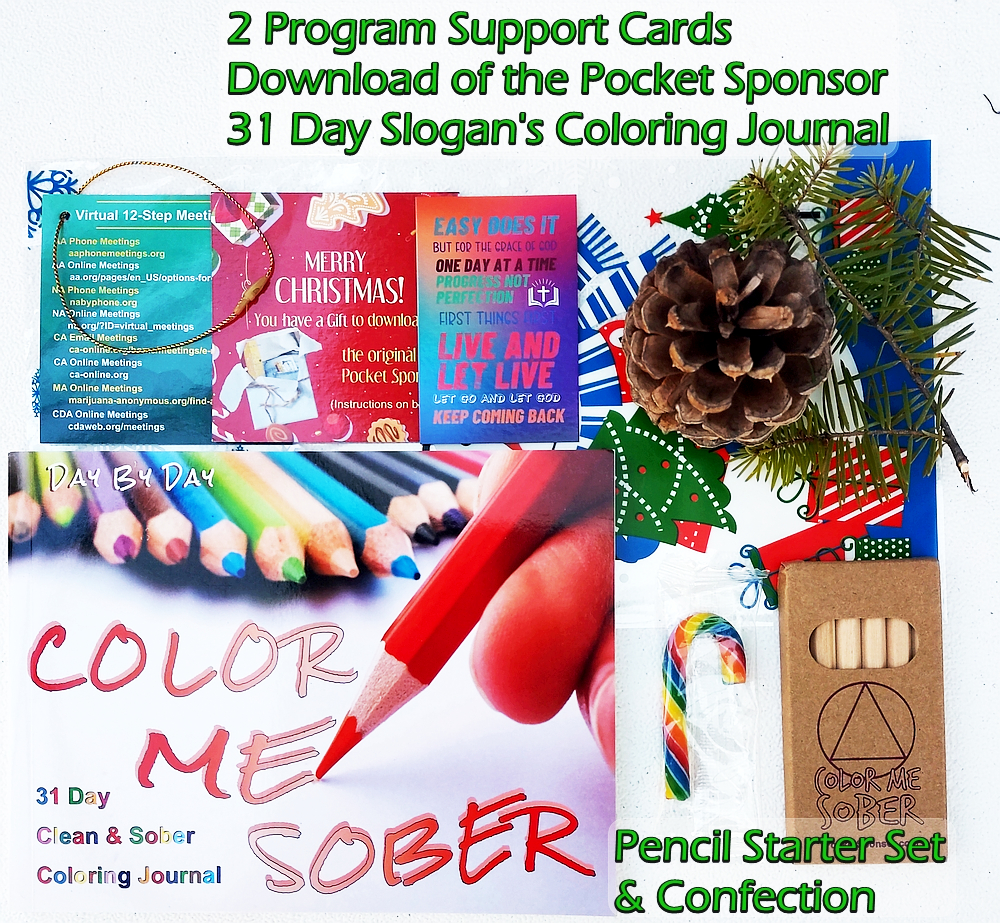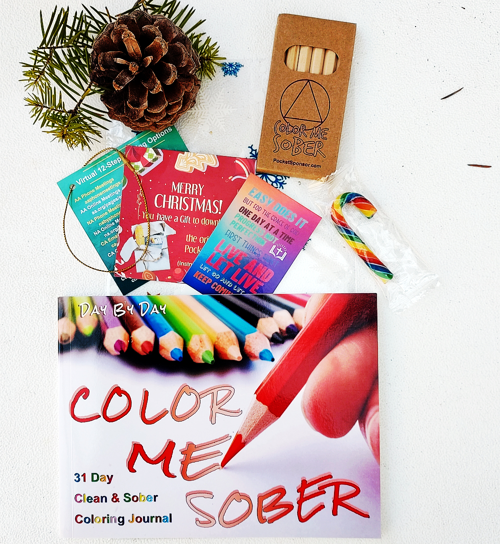 Color Me Sober, 31 Day Coloring Journal, with Color Me Sober Pencils in small Box , and Festive Christmas Hard Candy in Gift Bag!