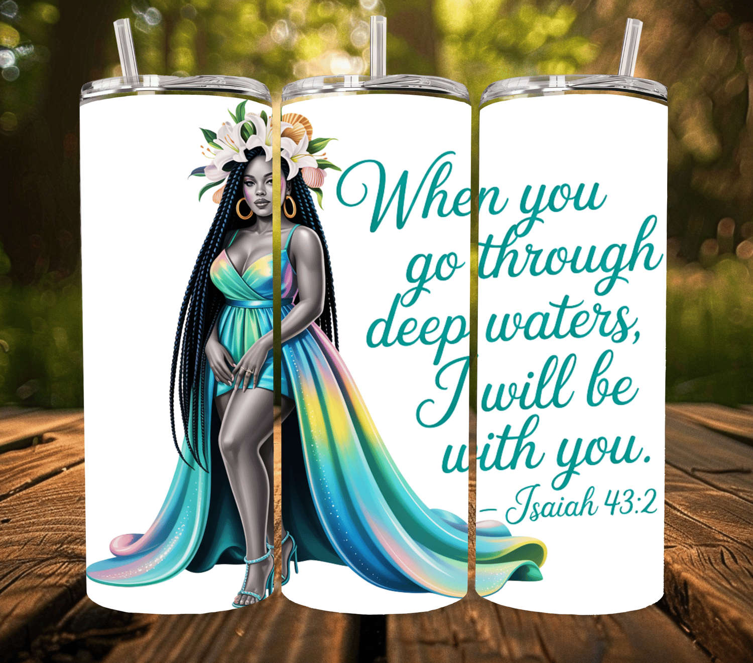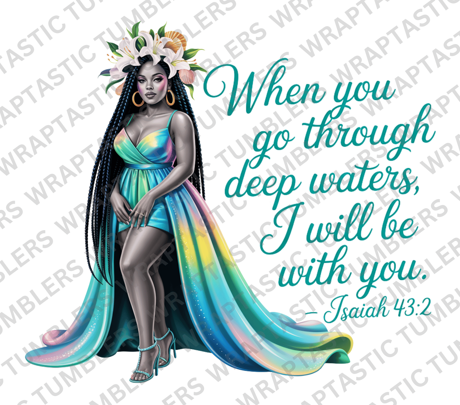 Isaiah 43:2 Scripture PNG, Black Woman Bible Verse Design, Inspirational Christian Tumbler Wrap, Religious Digital Download