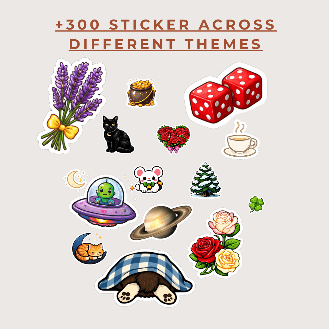 As a thank-you, this bundle also includes a free set of 300 journaling stickers, created to support creative expression and make your journaling practice feel lighter and more personal.