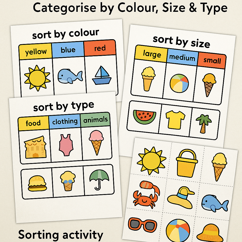 Summer Sorting Mats – Categorise by Colour, Size & Type (EYFS – KS1)