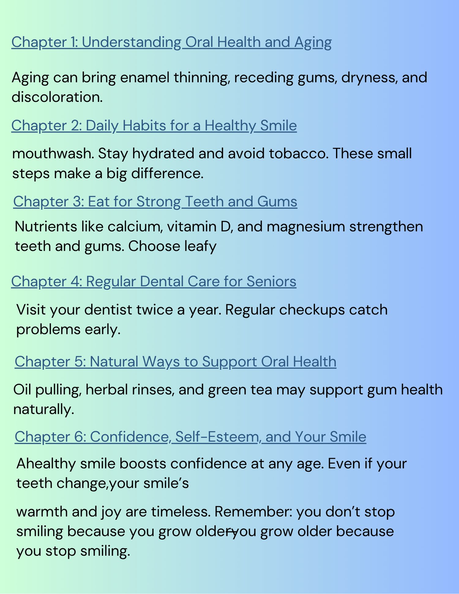 The good news? With a few smart, gentle habits, you can protect your teeth and keep your smile strong and beautiful for life. This guide will help you understand how aging affects your mouth—and what you can do about it, starting today.