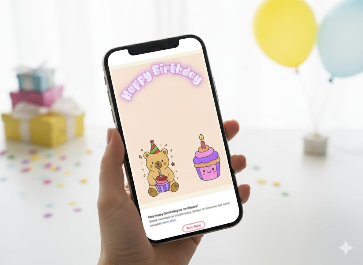 Cute Bear & Cupcake Birthday Invitation Card (PNG + JPG)