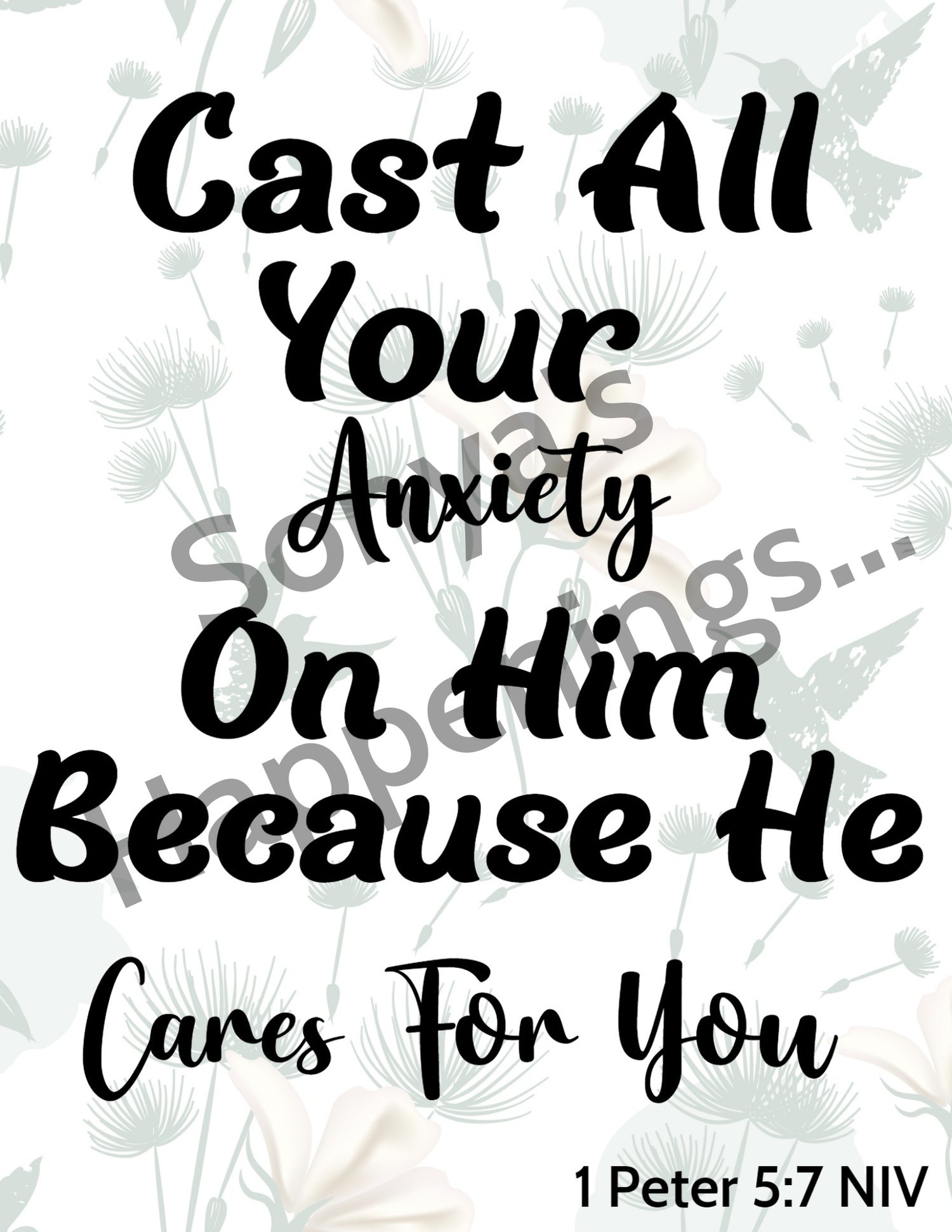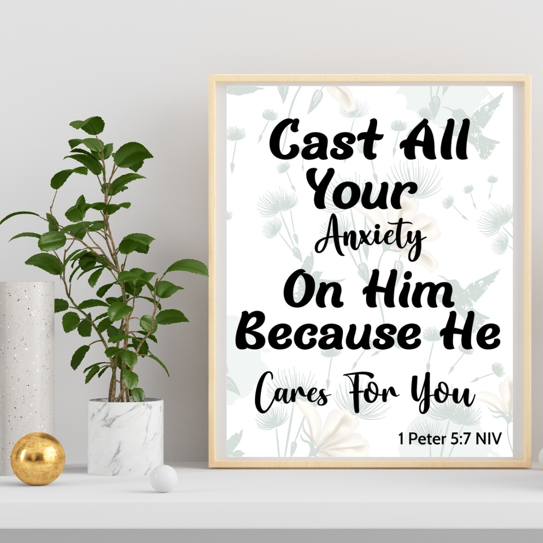 Cast All Your Anxiety On Him... Wall Art | 1 Peter 5:7 Wall Decor | Printable Christian Wall Art | Instant Download