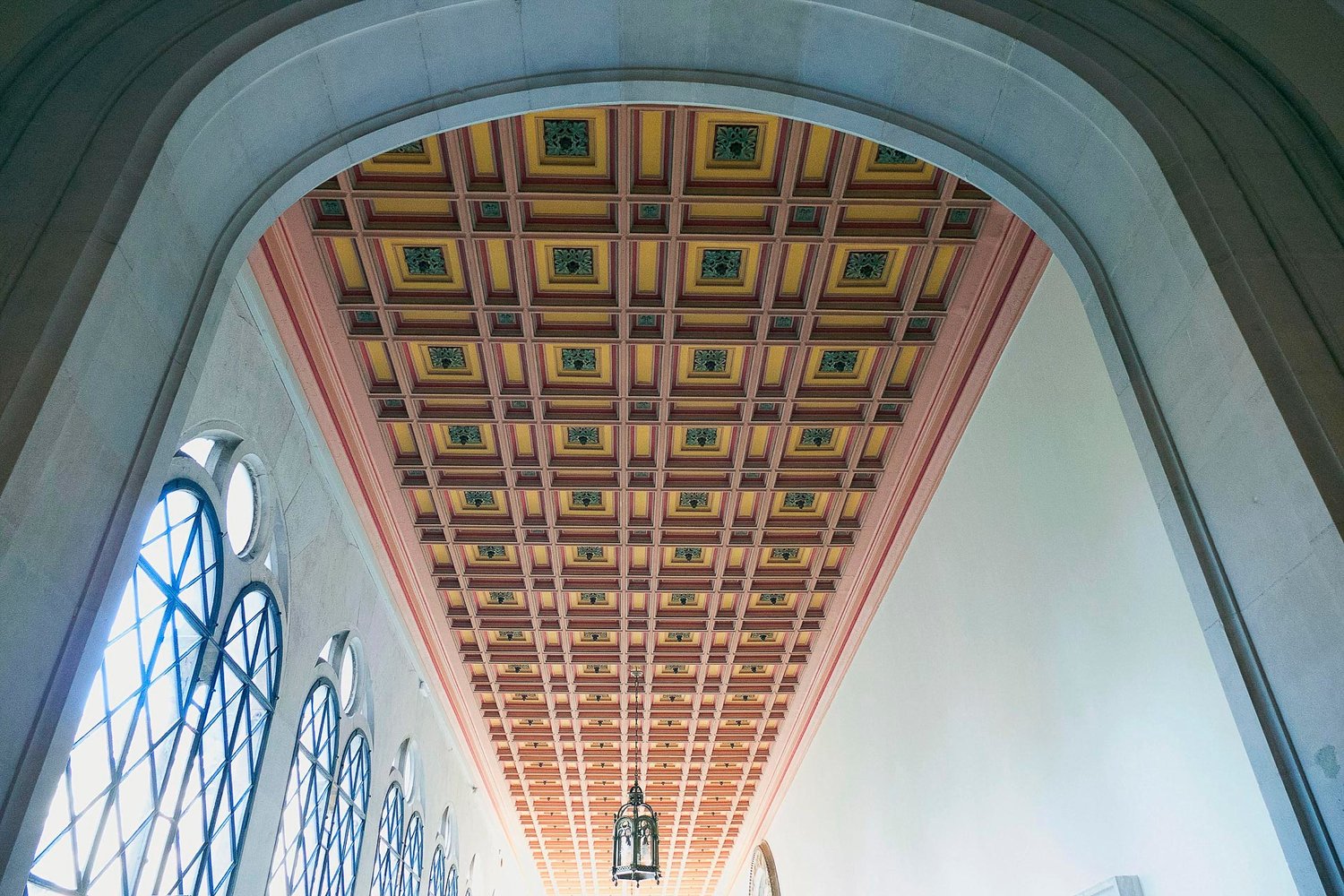 Detail of the decorated ceilings of the corridors inside the University of Barcelona