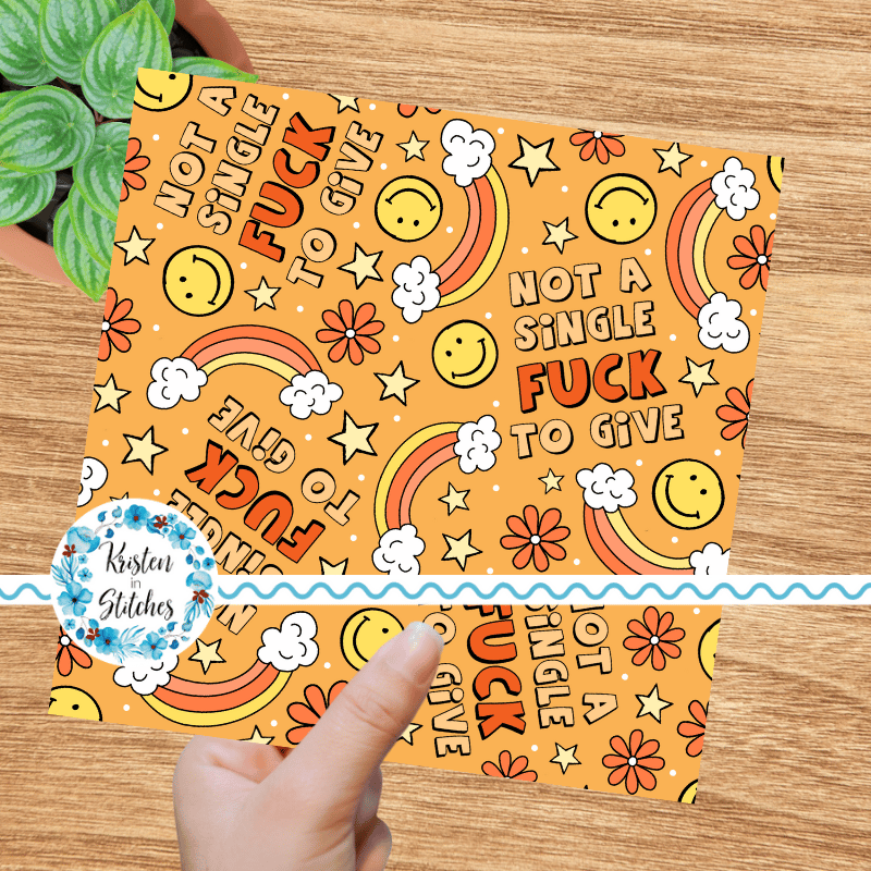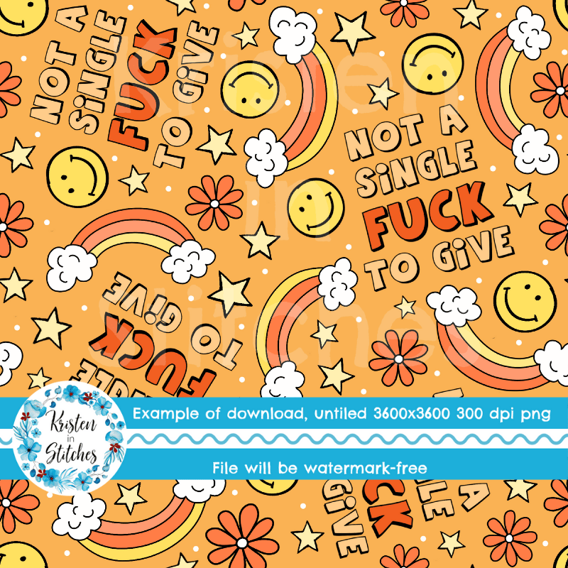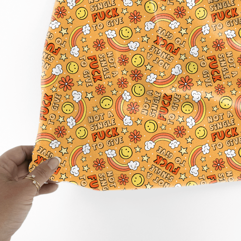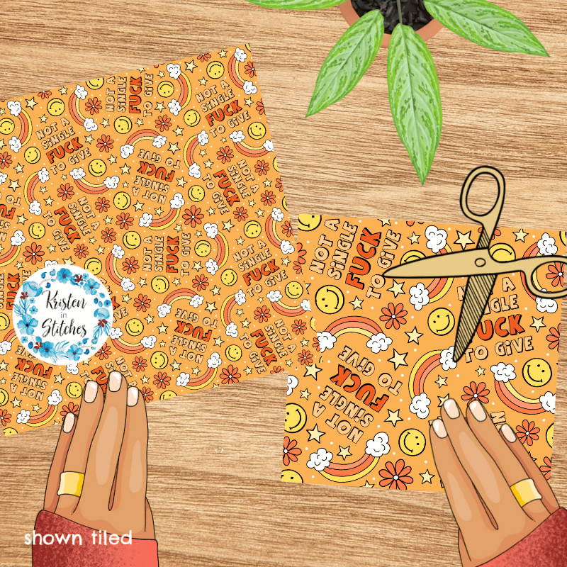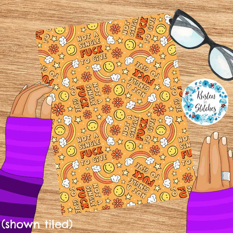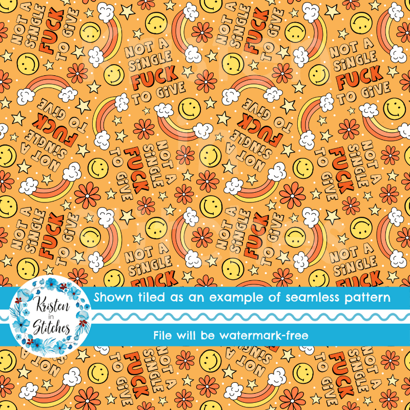 Not a Single Fuck to Give Swear Word Seamless Pattern, Pretty Profanities, Rainbows and Smiles, Orange