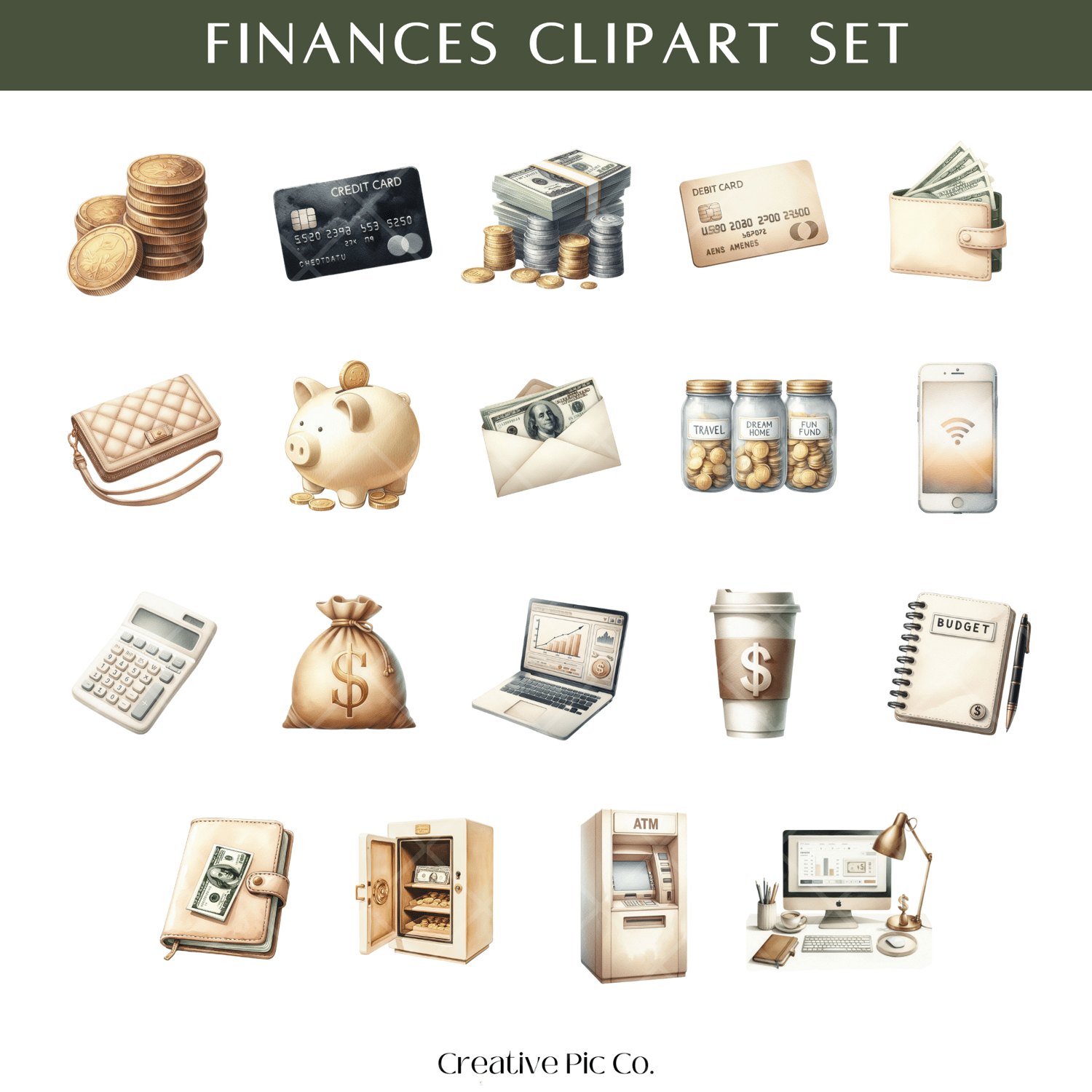 Stylish, functional, and perfect for every money-minded project this finance-themed clipart set blends modern tech with classic savings visuals. Whether you’re designing planners, building budgeting tools, or creating educational content around finances, these curated illustrations add polish and personality. A must-have for finance coaches, small biz owners, and digital creators.
