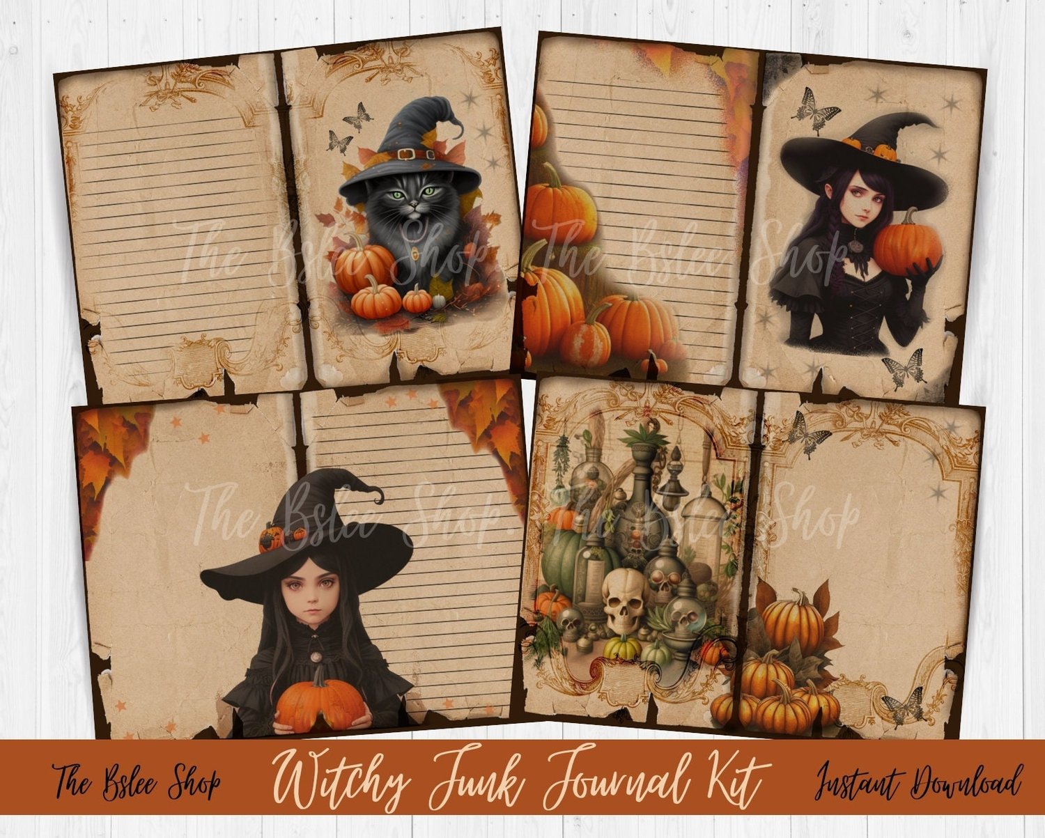 Vintage Witch Junk Journal, Pumpkin Journal Pages, Halloween Digital Paper, Witchy Writing Paper, Halloween Scrapbooking, Autumn Journal