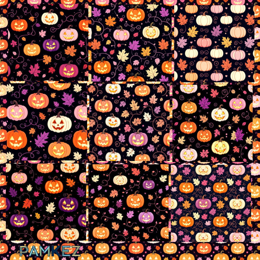 - 10 unique commercial use designs featuring pumpkins, leaves, and Halloween motifs