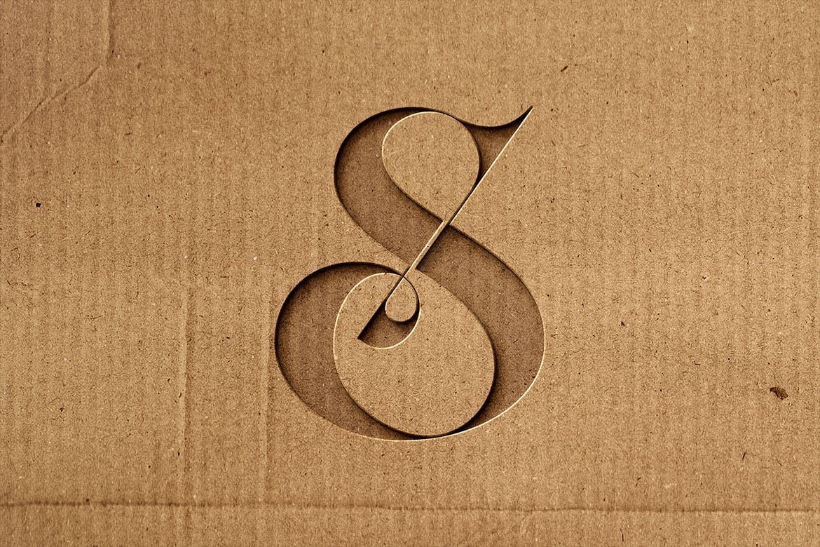 Cut out from a piece of cardboard. The texture of the cardboard adds to the organic, tactile quality of the design, and the light hits the cuts just right to emphasize their shape.
