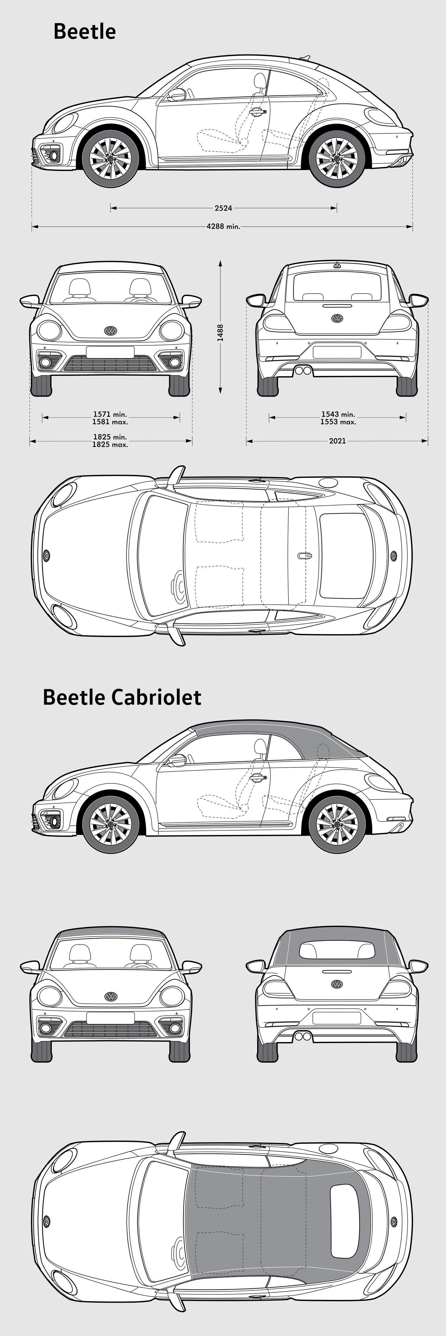 Volkswagen Beetle 2017 Car Blueprint PDF SVG Vector Drawing.
