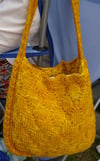 Knit totes are fabulous items. They are simple in construction but carry a lot of wow! factor. They allow you to play with a stitch, yarn, or color that you might not pick for a sweater but still love. And to top it all off, they’re useful! Good Day Sunshine will brighten your day while knitting it and while carrying it. At 11 inches square by 2 inches deep, it’s a good size for toodling around town, without being so large that it’s unwieldy.