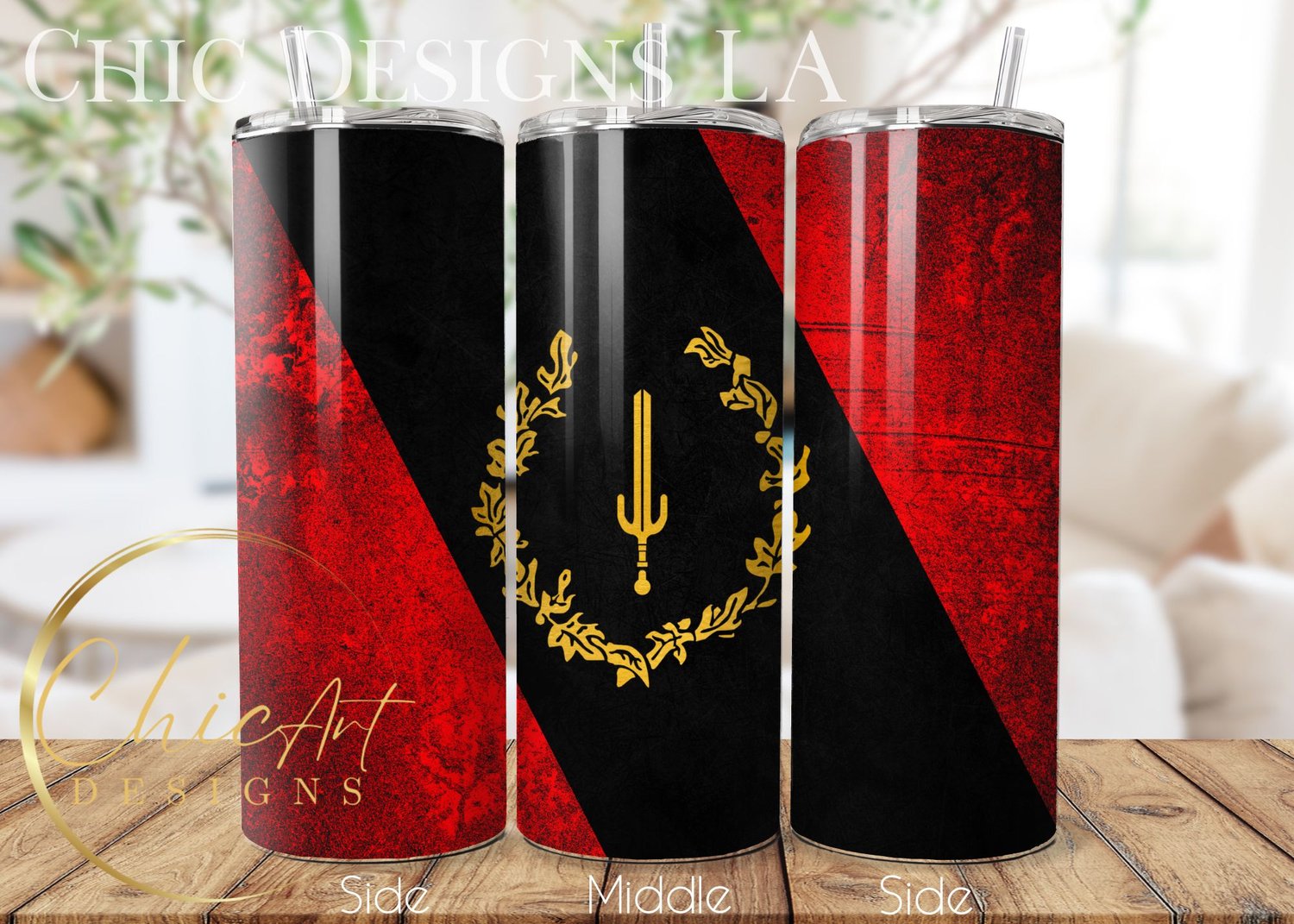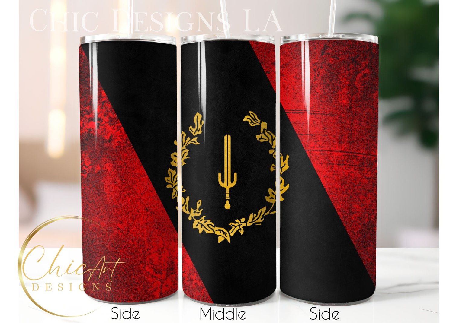This tumbler was designed after the original Black American Heritage flag by Melvin Charles.