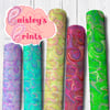 All main and coord designs are seamless and suitable for fabric printing etc. Sub panels all have a transparent background. This design was digitally hand drawn by Paisley's Prints.