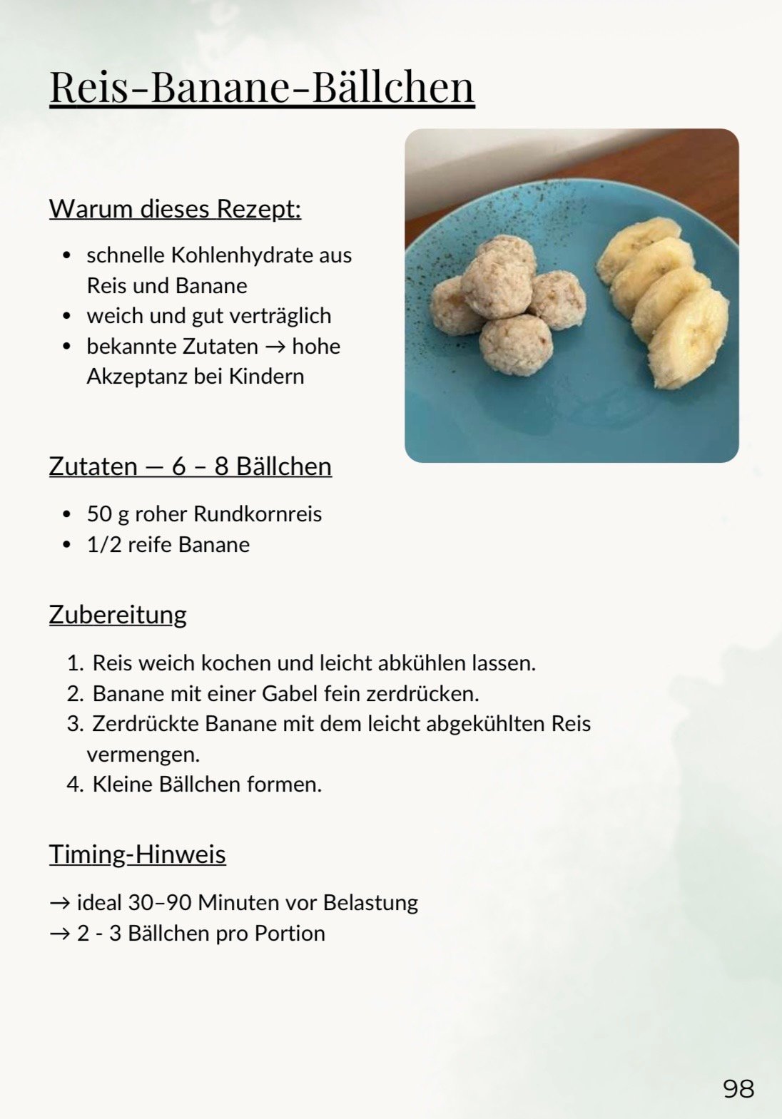 - 31 Rezepte nach Timing sortiert (vor, während & nach Belastung)