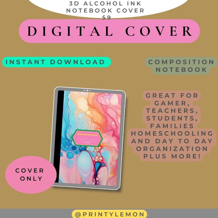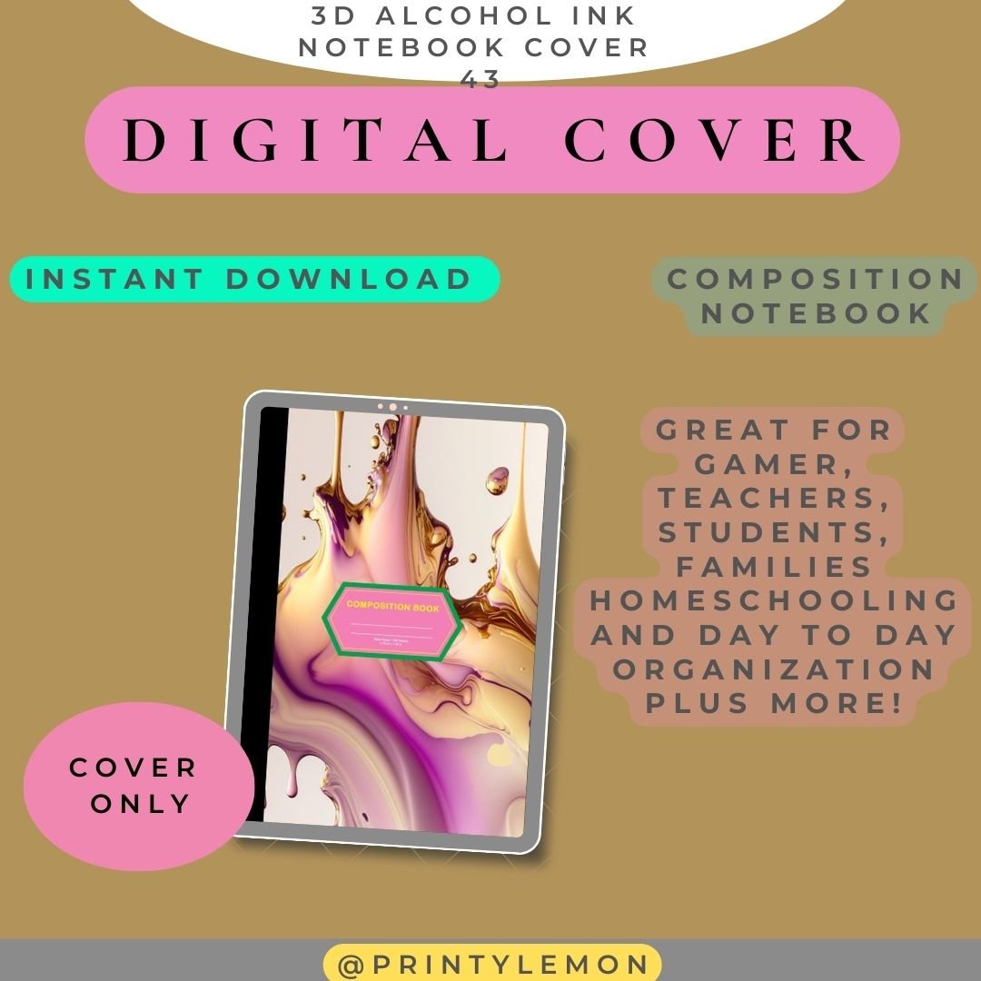 43 Alcohol Ink 3D | Digital Cover Premium | Notebook Cover | GoodNotes | Composition Notebook | Printable