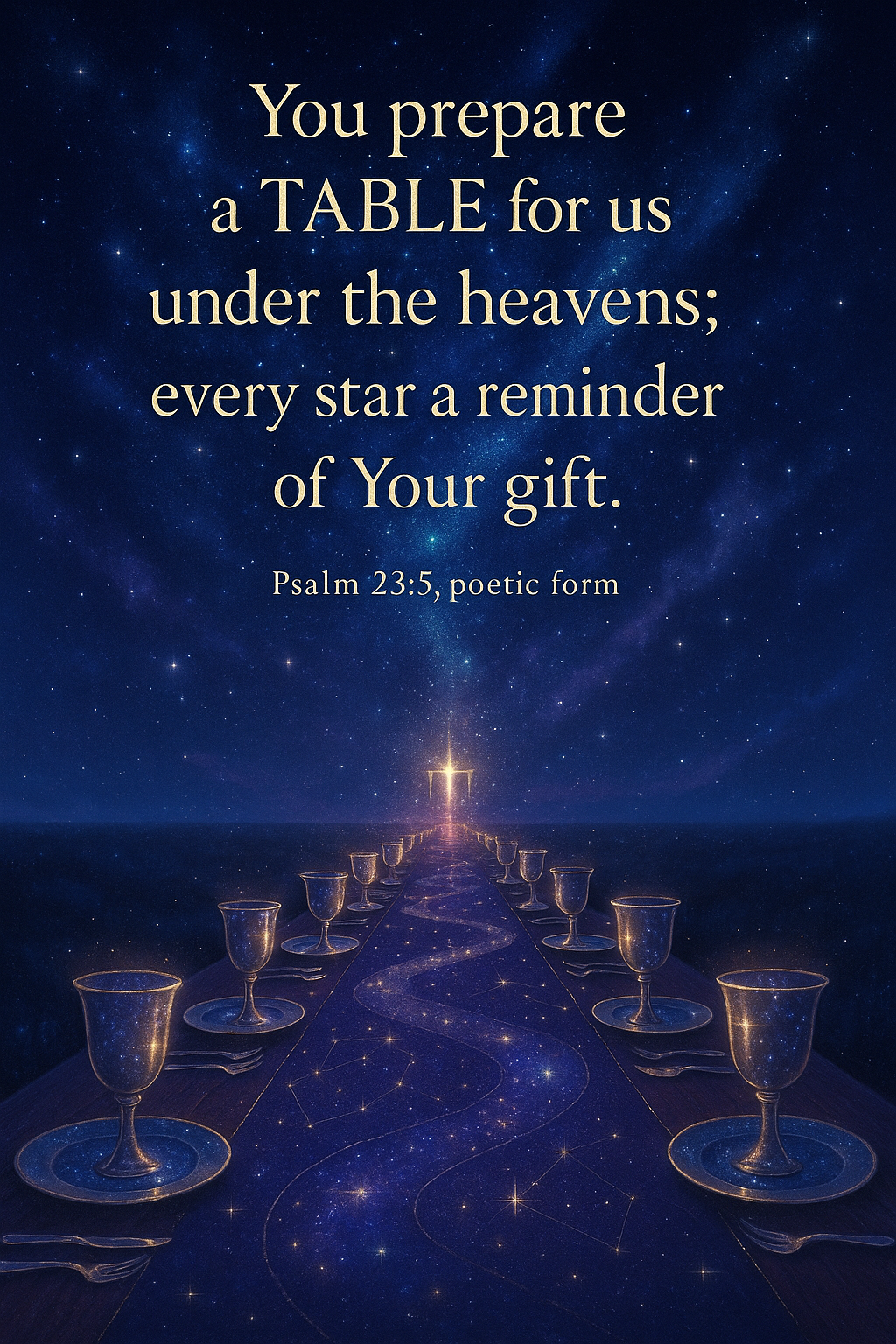 “You prepare a TABLE for us under the heavens; every star a reminder of Your gift.” – Psalm 23:5 (poetic)