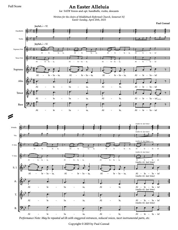 An Easter Alleluia by Paul Conrad. Dedicated to the music ministry of Middlebush Reformed Church (Somerset, NJ), for their Easter Sunday Celebration Service on April 20, 2025.