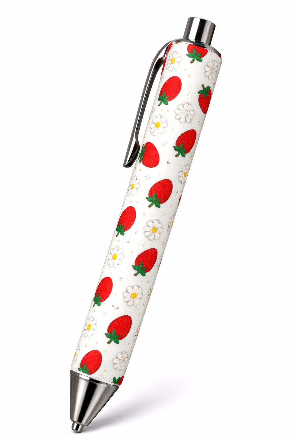This adorable design features bright red strawberries paired with delicate white daisies on a soft background, creating a fun and playful look perfect for spring and summer.