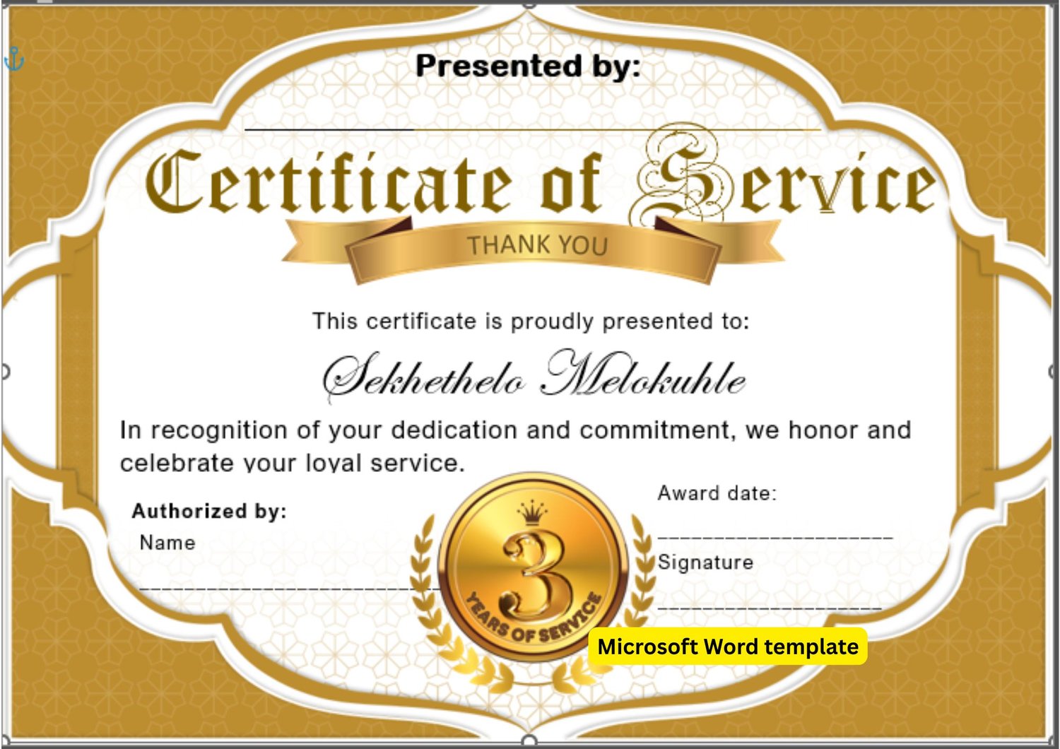 03 Years of Service - Editable Microsoft Word template with logo tailored with number of years G202L020047