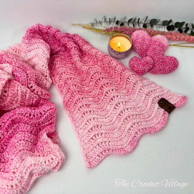 Create a gorgeous lightweight scarf with The Darling Scarf Crochet Pattern, perfect for Valentine’s Day, Mother’s Day, or any special occasion. This elegant ripple chevron design features an easy 2-row repeat stitch that’s simple to memorize and relaxing to crochet—ideal for advanced beginners and intermediate crocheters.